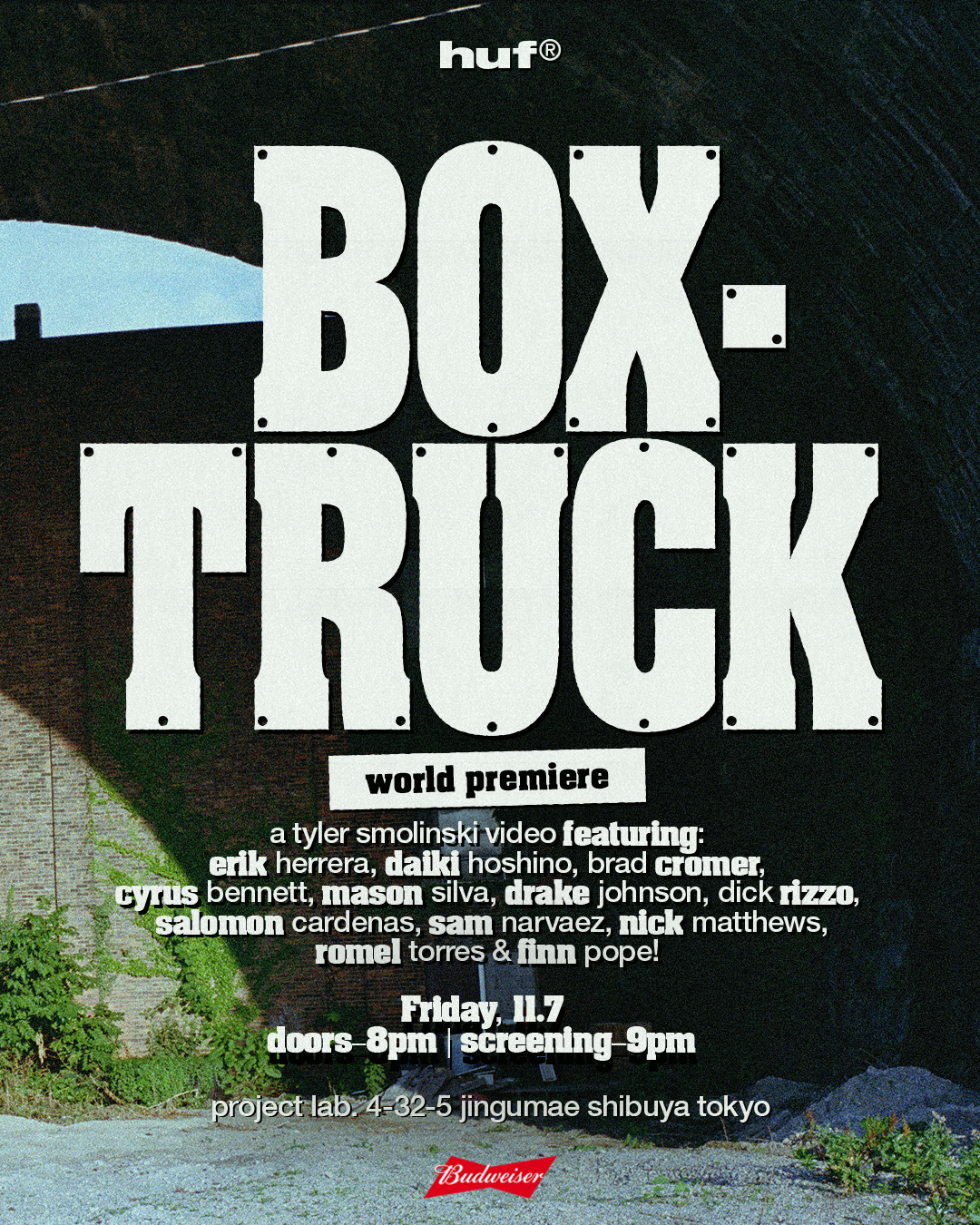 HUF、スケートチームライダーが総出演したTyler Smolinskiの新作ビデオ『Box-Truck』ジャパンプレミアを開催
