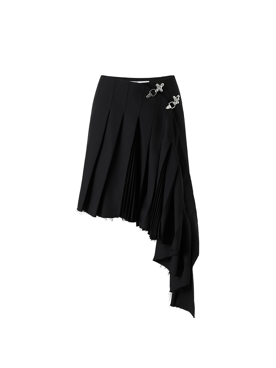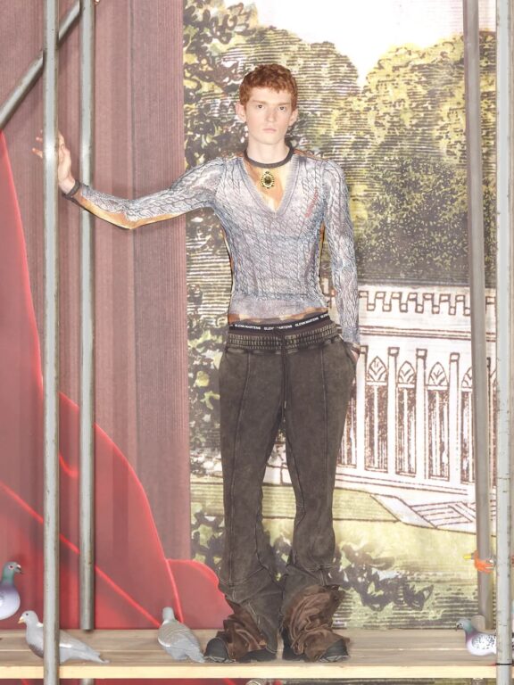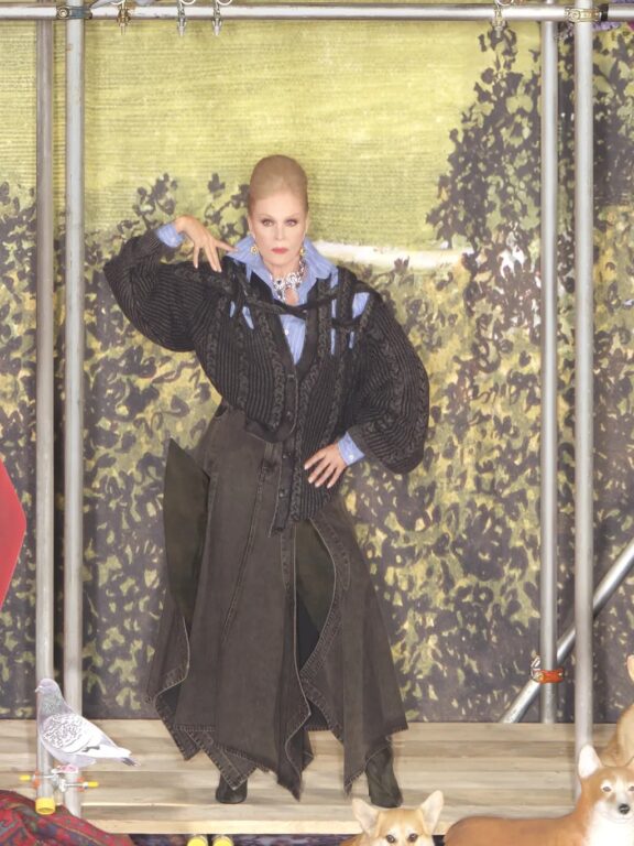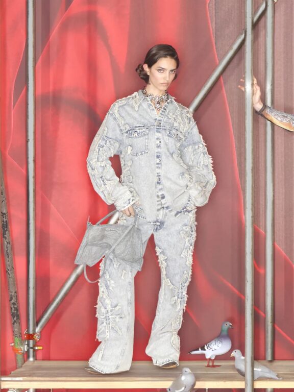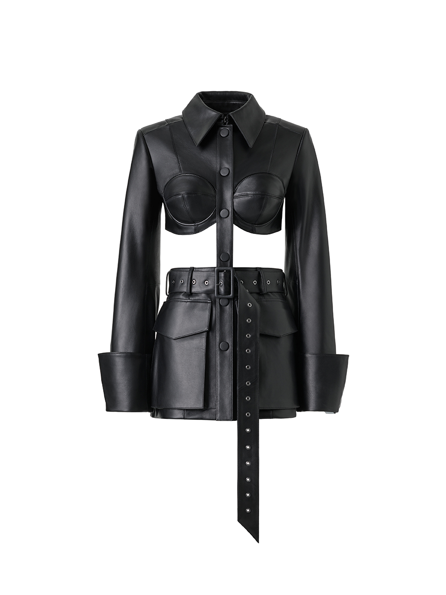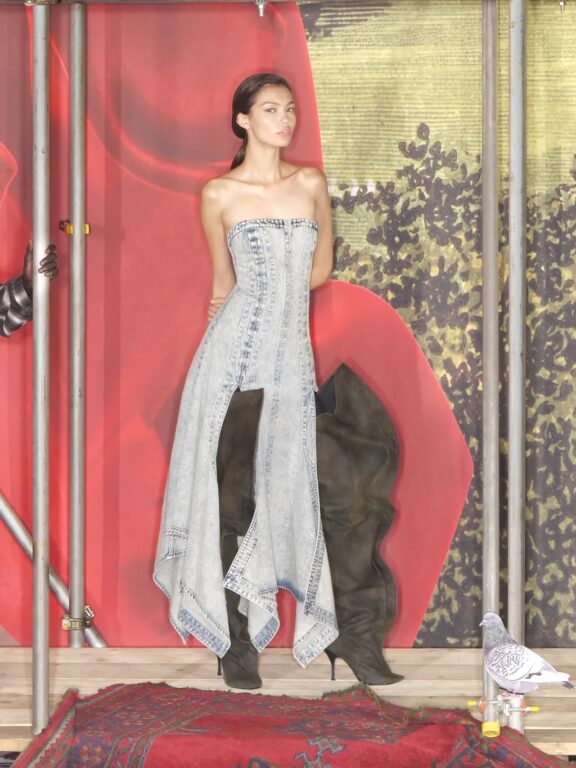 ウィメンズウェアからは、rokhのシグネチャーアイテムでもあるダブルレイヤーのトレンチコート、メタリックノッチ付きベルトが伸びたオーバーサイズブレザー、取り外し可能なイレギュラープリーツのブラック・コルセットドレス、カットアウト・ブレザーミニドレスが登場。