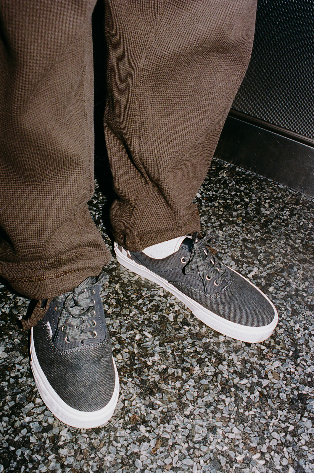 「ERA(エラ)」、「SLIP-ON(スリッポン)」、「ROWLEY XLT(ローリー XLT)」の3スタイルを展開。VAINL ARCHIVEのシグネチャーカラーであるブラウンとブラックのカラーを組み合わせ、ヒールカウンターやライニングにVANSのアイコンである「チェッカーボード」をアクセントにあしらった。アッパーにウォッシュドデニムを採用することでビンテージ感を演出し、ROWLEY XLTには、オイルドスキン、ヌバック、キャンバスなどの素材も取り入れた。