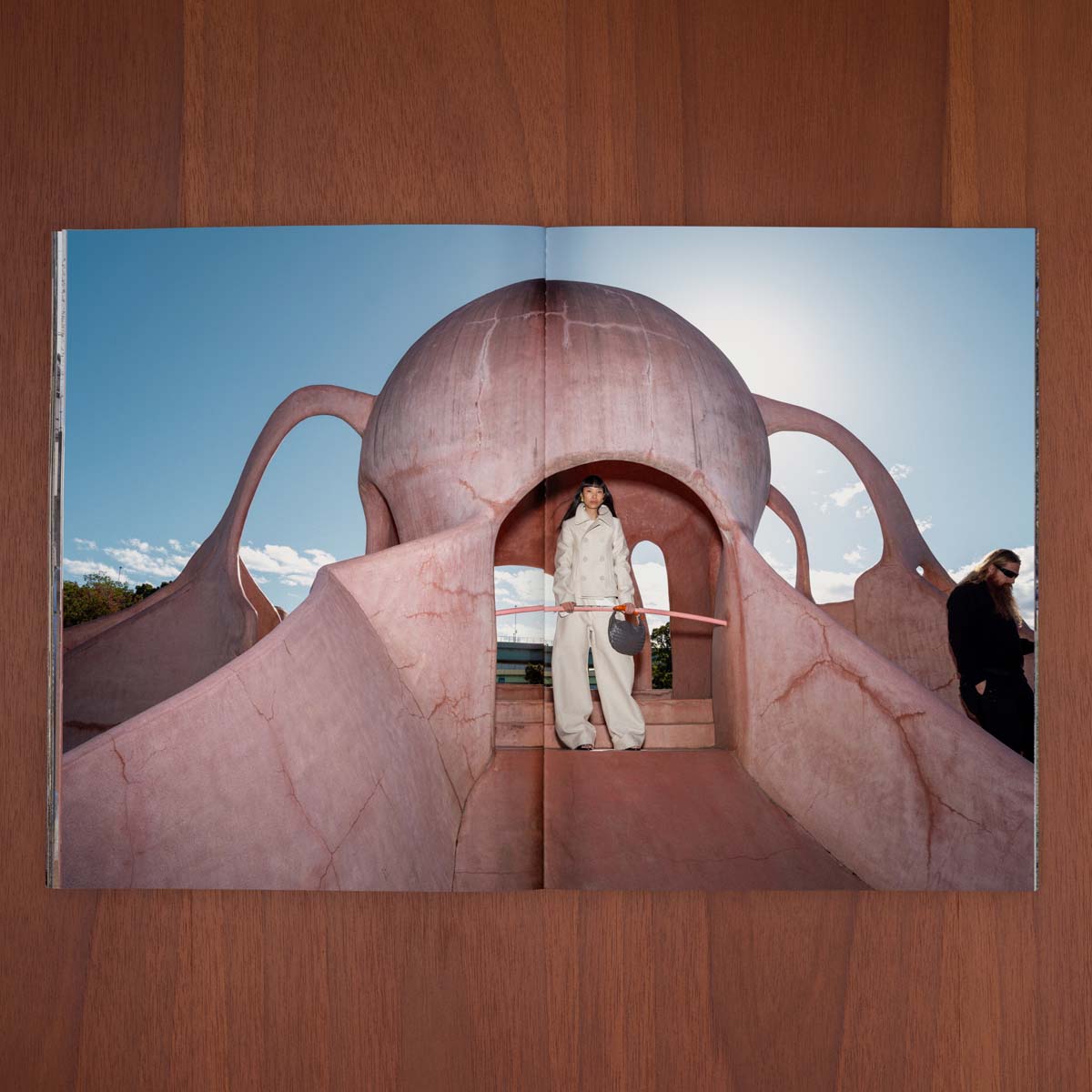 全4冊の構成になっており、クリエイティブ・ディレクター、マチュー・ブレイジー(Matthieu Blazy)による2024年サマーコレクションの制作プロセスをベースに、写真家、アレック・ソス(Alec Soth)が手がけた東京近郊の公園で撮影されたキャンペーンビジュアル、撮影の舞台裏、スケッチ、ステッカー、旅のノートが収められている。