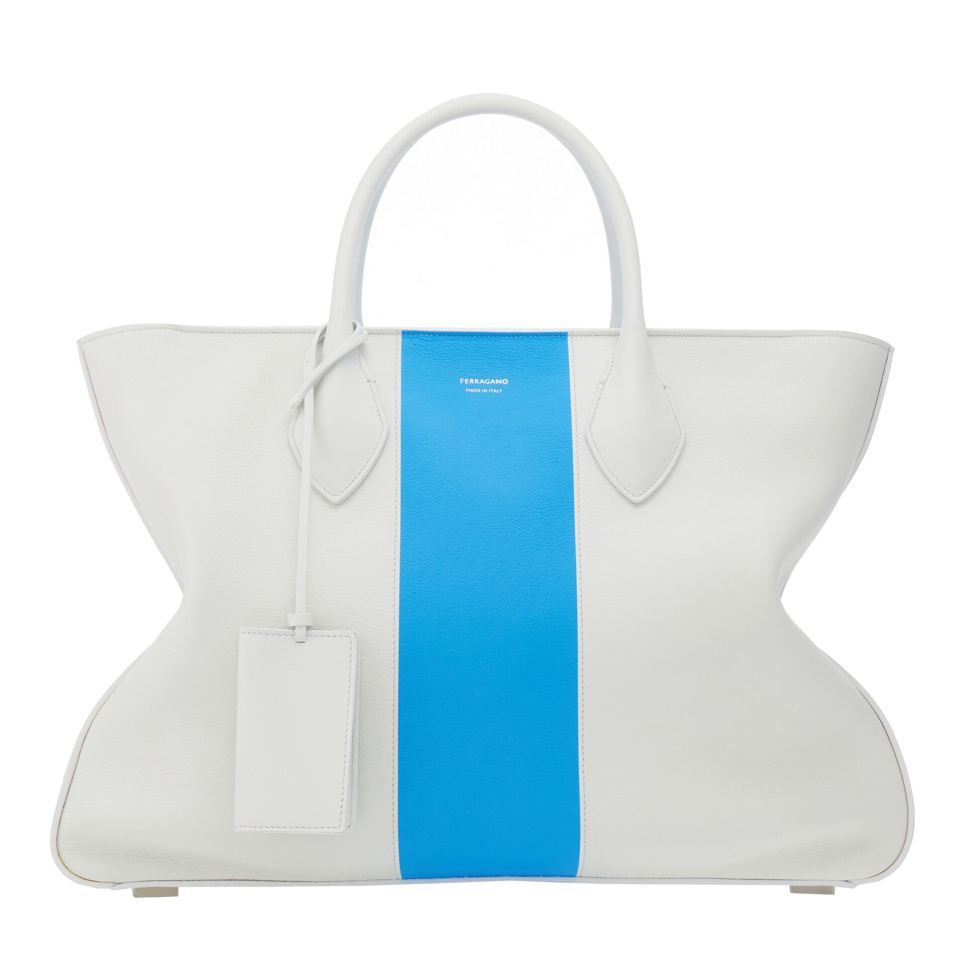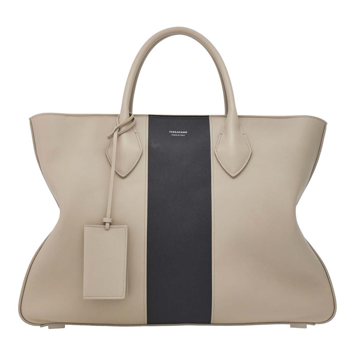FERRAGAMOは、メンズのアイコンである星のようなシルエットのトートバッグのバイカラーモデルを発売。
