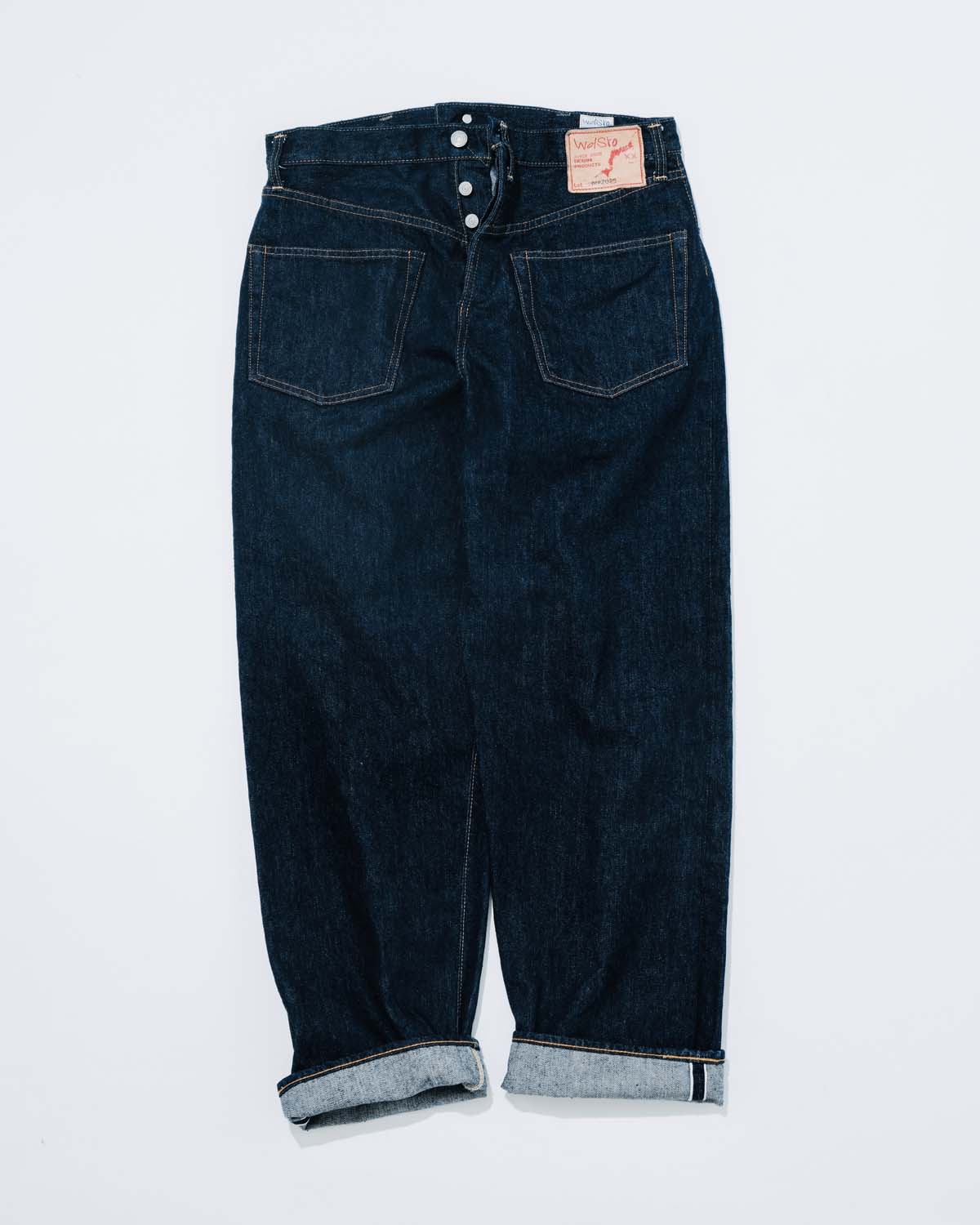 それぞれ経年変化も楽しめる旧式のシャトル機で織ったオリジナルのセルビッジデニムで、本格的なヴィンテージの仕様の縫製で仕上げた。