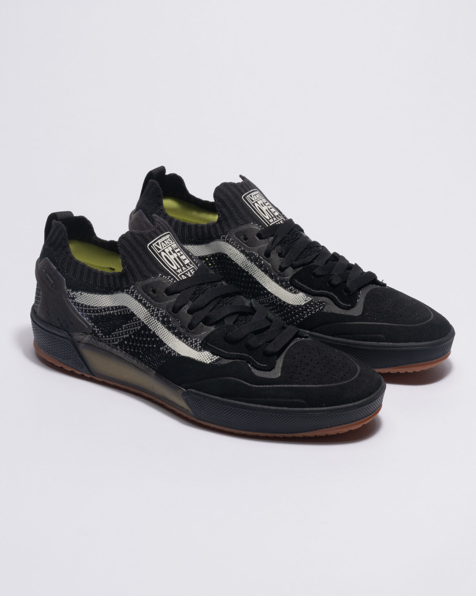 アッパーにニット素材を採用し、足を360度包み込むようなフィット感を追求。つま先部分はステッチを使わずレイヤーを熱圧着したスエードパネルでカバーし、耐久性を実現。ソールは、衝撃吸収性が優れたUltraCushTMインソールと、グリップ力が優れたSickStickTMラバーアウトソールを組み合わせた「UltimateWaffleTM」構造を採用するなど、VANSの最先端テクノロジーを集結させた。