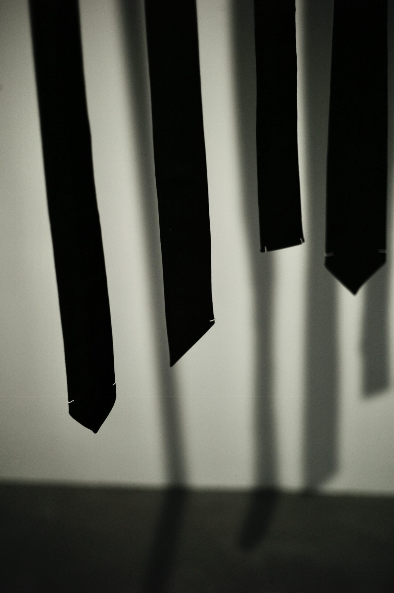 ウールギャバジンを使用した手縫いによるネクタイシリーズは、生地に芯張りをして硬めに仕上げることが多い通常のタイとは異なり、芯張りをせずに、薄い柔らかい生地を1枚仕立てに仕上げられている。