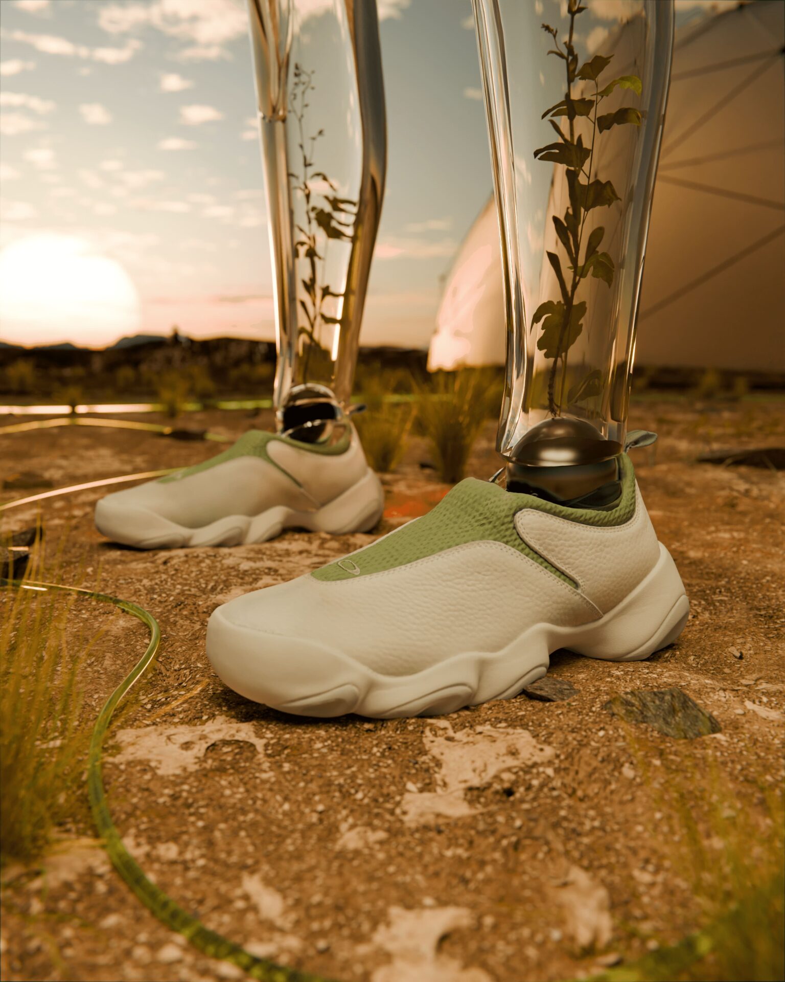 「Flesh(フレッシュ)」、Flesh Sandal「(フレッシュサンダル)」、「Paguro(パグロ)」の3モデルが新色で登場。宇宙空間を感じさせるセージグリーンや、チャコールのように深いトーンのグリーンなど、より軽やかで幽玄なカラーパレットへとシフト。