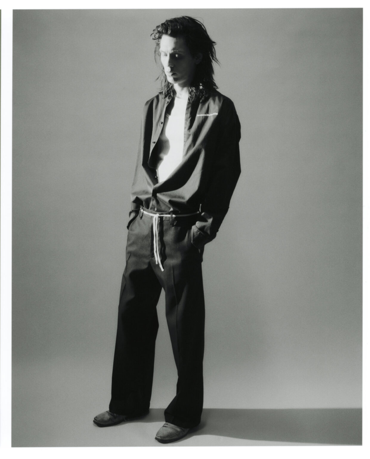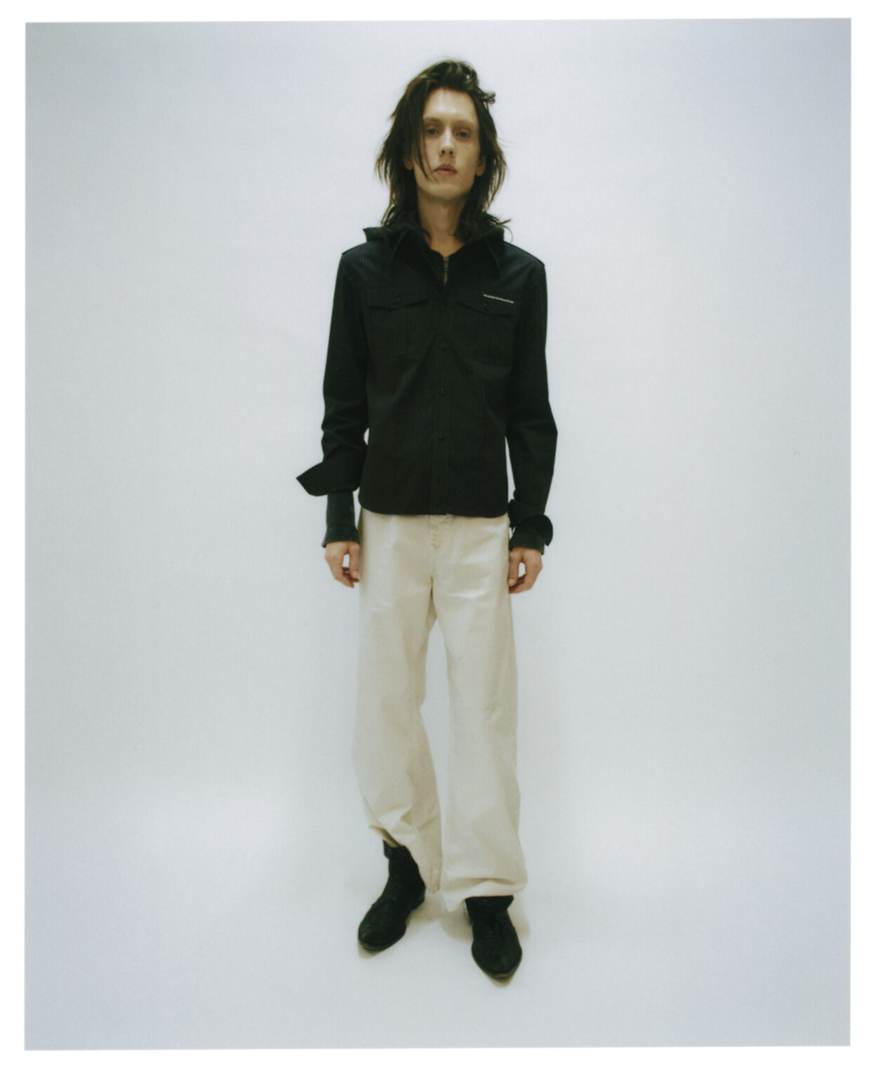 1993年に発売された、アイコニックな「Lampin」モデルをリワーク。足首周りの構造的なパッドを取り除き、靴が柔らかくなり、 経年変化で崩れていくことを想定。エクリュ色のコットンキャンバスに白いアイレットとサイピングソールをあしらい、タンの内側には「SSC」の織り込みラベルが覗く。
