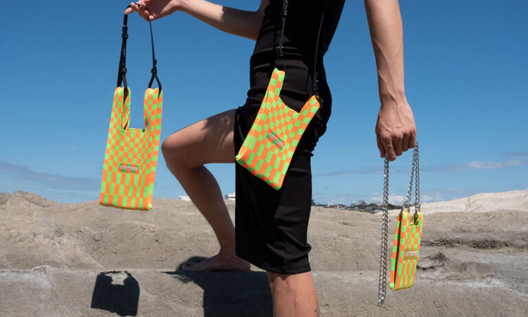 このポップアップストアでは、最新の2023 PRE SPRING COLLECTIONより、ブランドのシグニチャーアイテムであるニットバッグを展開する。インターシャ編みで細かな柄を編み⽴てたニットバッグは、⽇本国内に数台しかない特殊な編み機を使い、張りとボリュームを持たせるために別注で作られた伸縮性のあるポリエステルの撚⽷を使⽤し、実際に触れることで⽇本の技術の⾼さを感じることができるLASTFRAMEを象徴するアイテム。