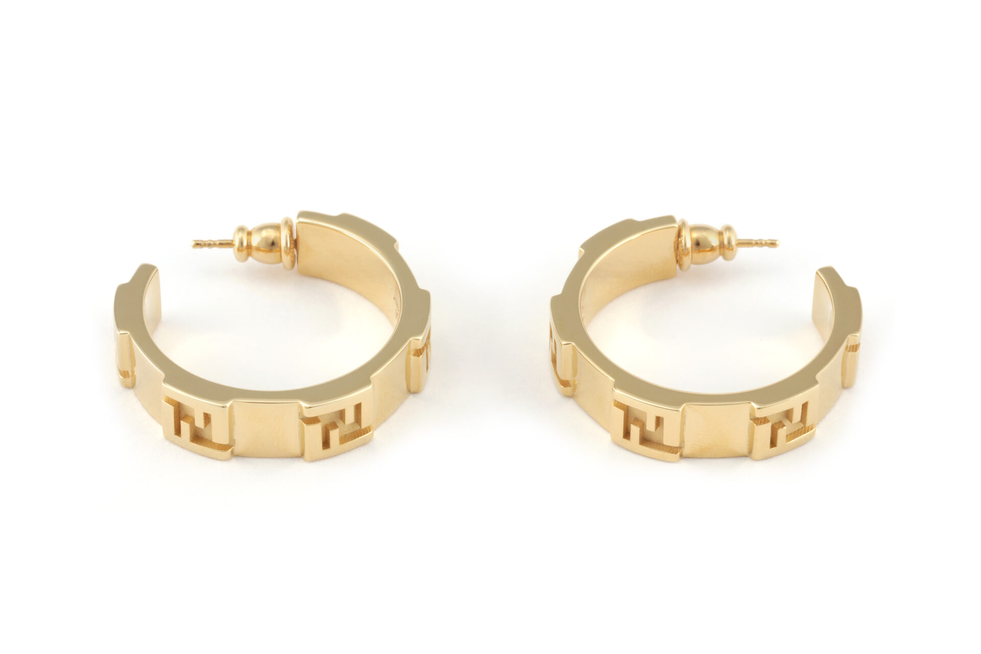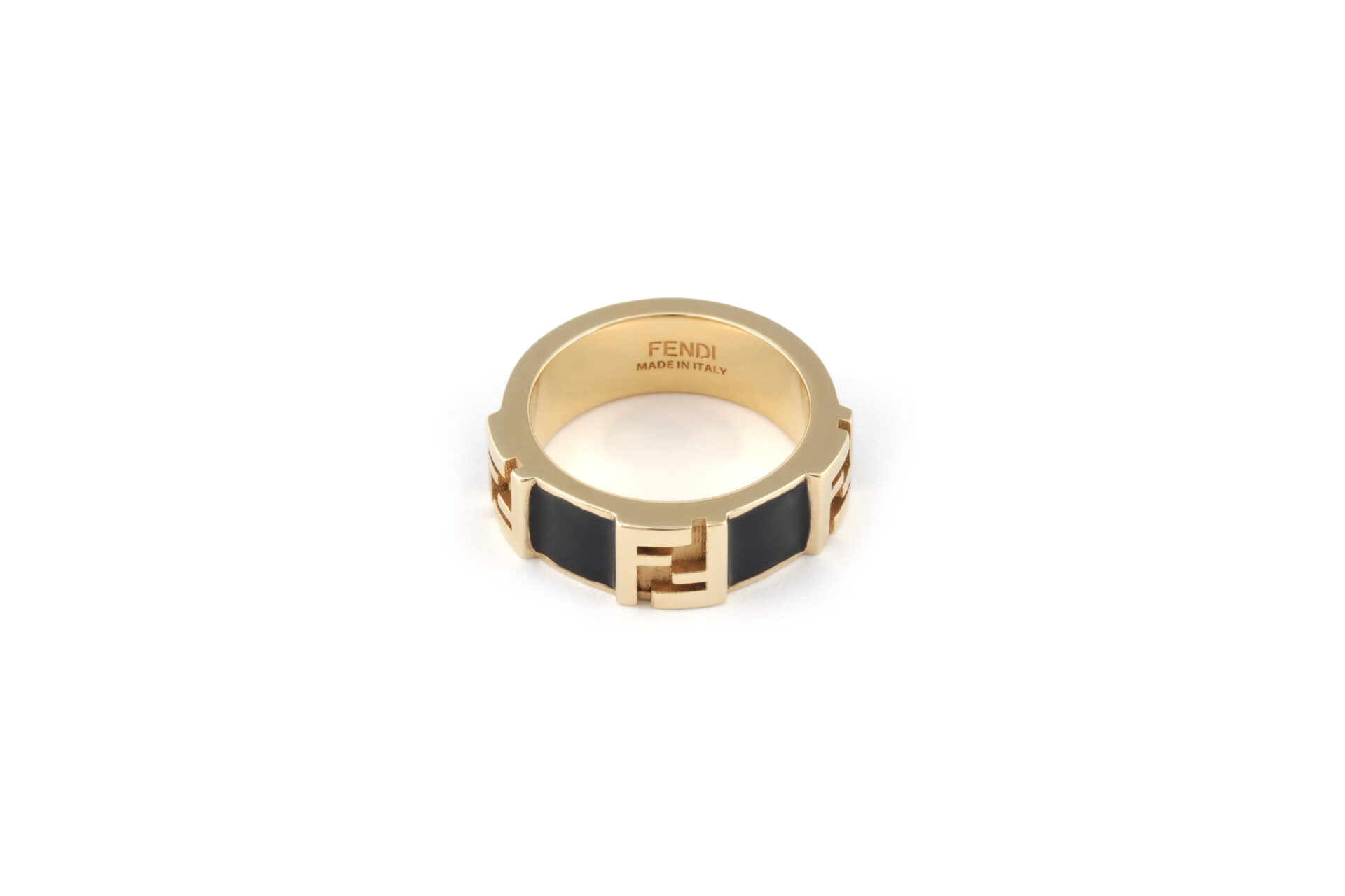 フルメタルゴールドとクラシックなブラックエナメル&ゴールドの2つのバリエーションを展開し、スタッドピアスやフープピアスからバングル、リング、ペンダントネックレスを揃える。各ジュエリーには、立体的な効果を生み出すわずかな隆起が特徴の「FF」ロゴを施した。存在感のあるブラックの「FF」ロゴが印象的なスタッドピアスとネックレスもお目見え。