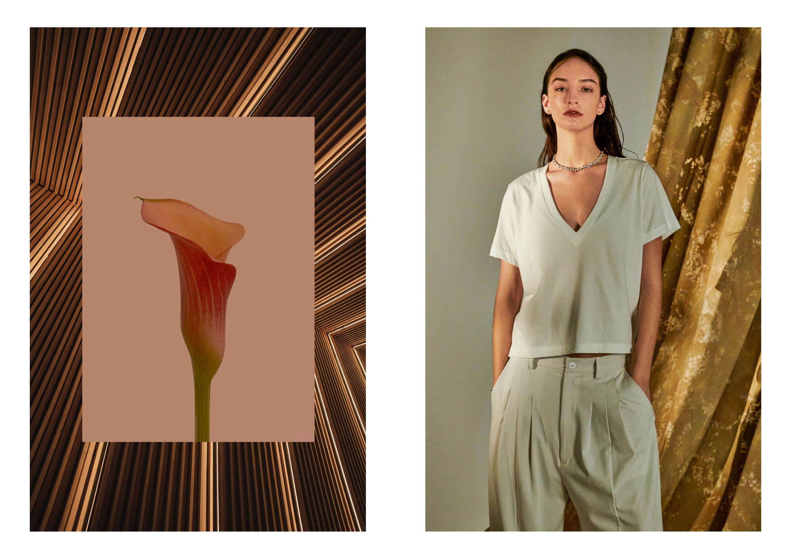 トラックジャケットとトラックパンツのセットアップアイテム、またCOREの定番商品のワイドクロップドパンツ、ストレートシルエットのトラウザーや、胸まで開いた深めのVネック、短い着丈がポイントの「WMNS V TEE」も同時リリース。