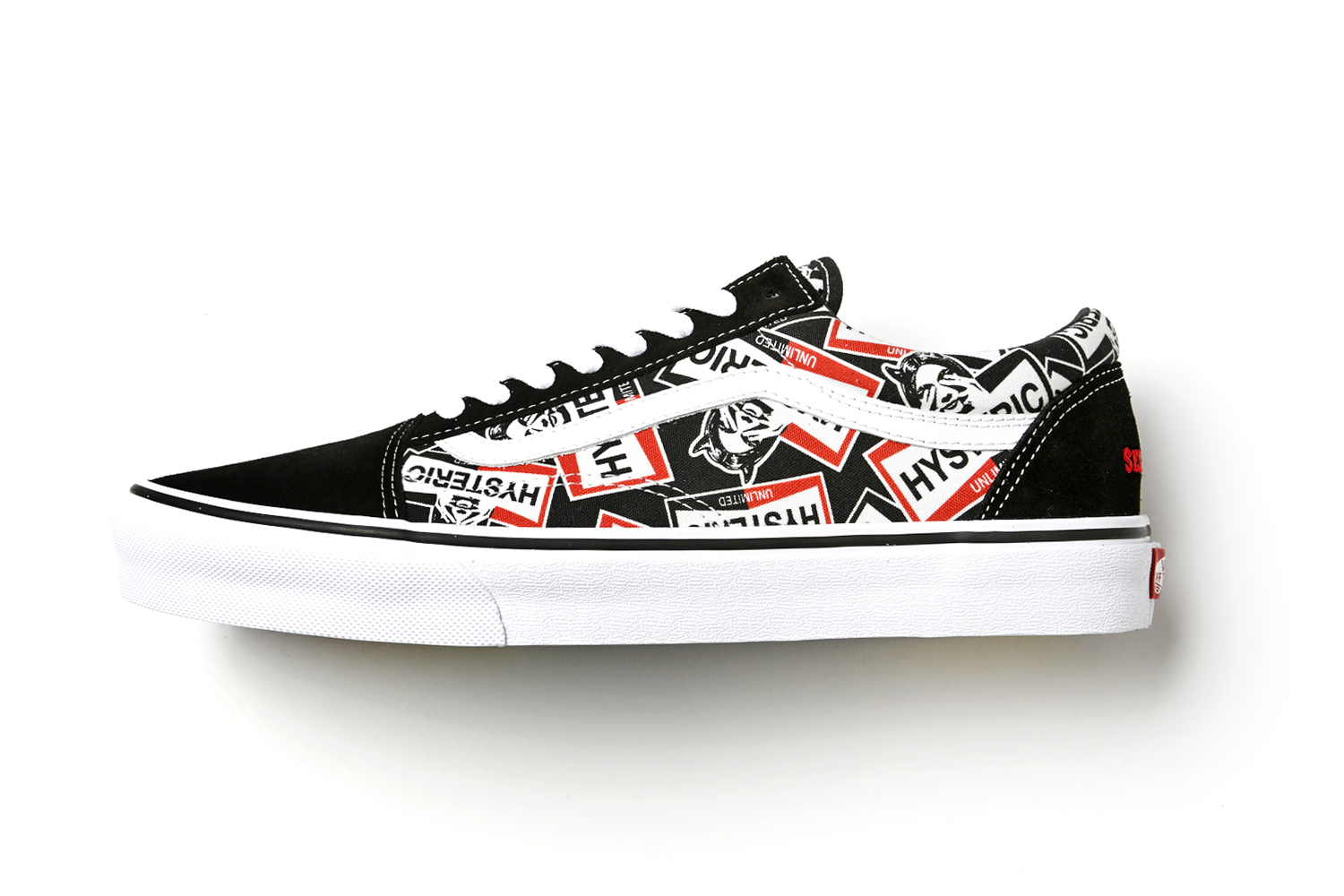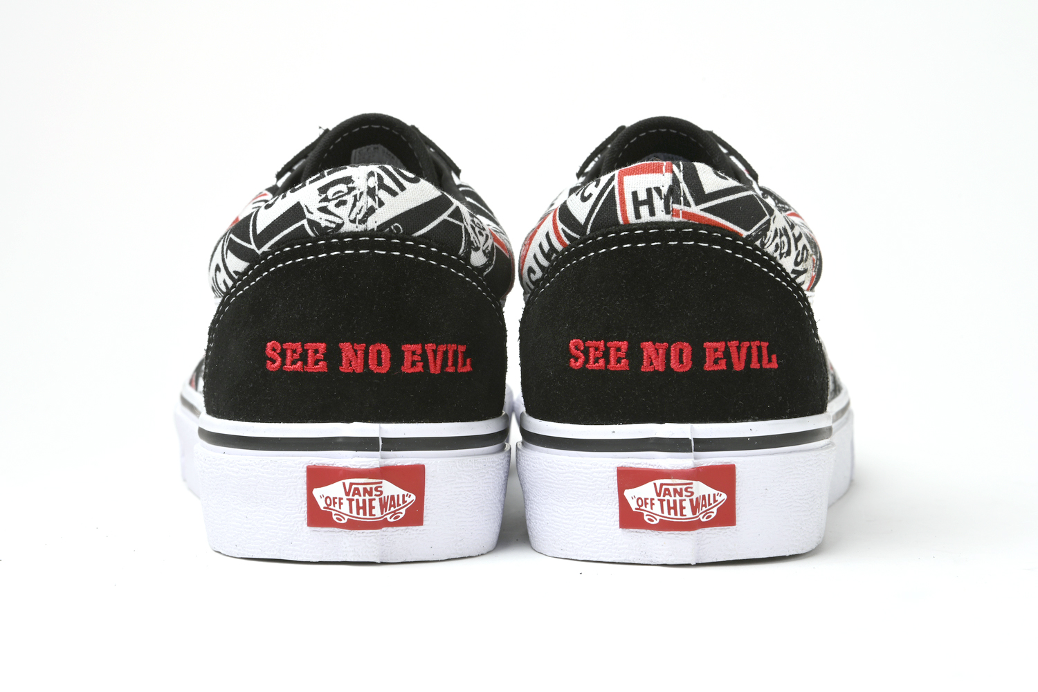 OLD SKOOLをベースに、アメリカンマッスルカー(大排気量で高いパフォーマンスを発揮するアメ車)に着想し、アッパーをHYSTERIC GLAMOURの人気モチーフの1つである「SEE NO EVIL」を総柄に採用。