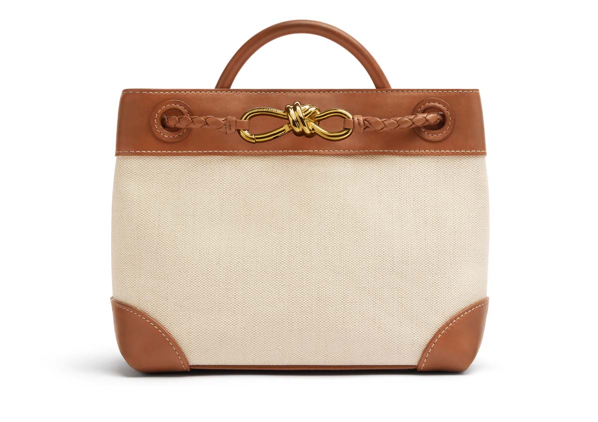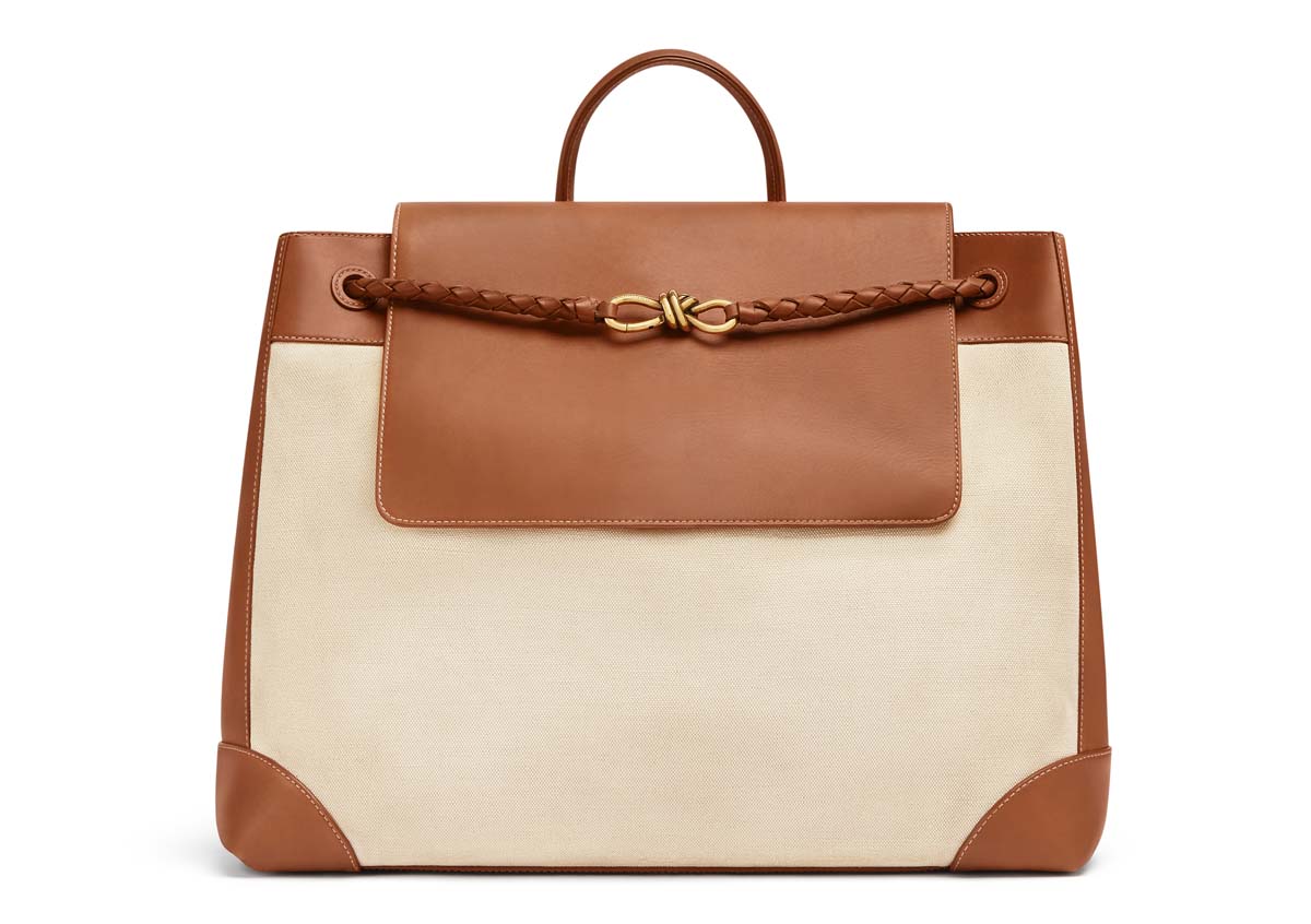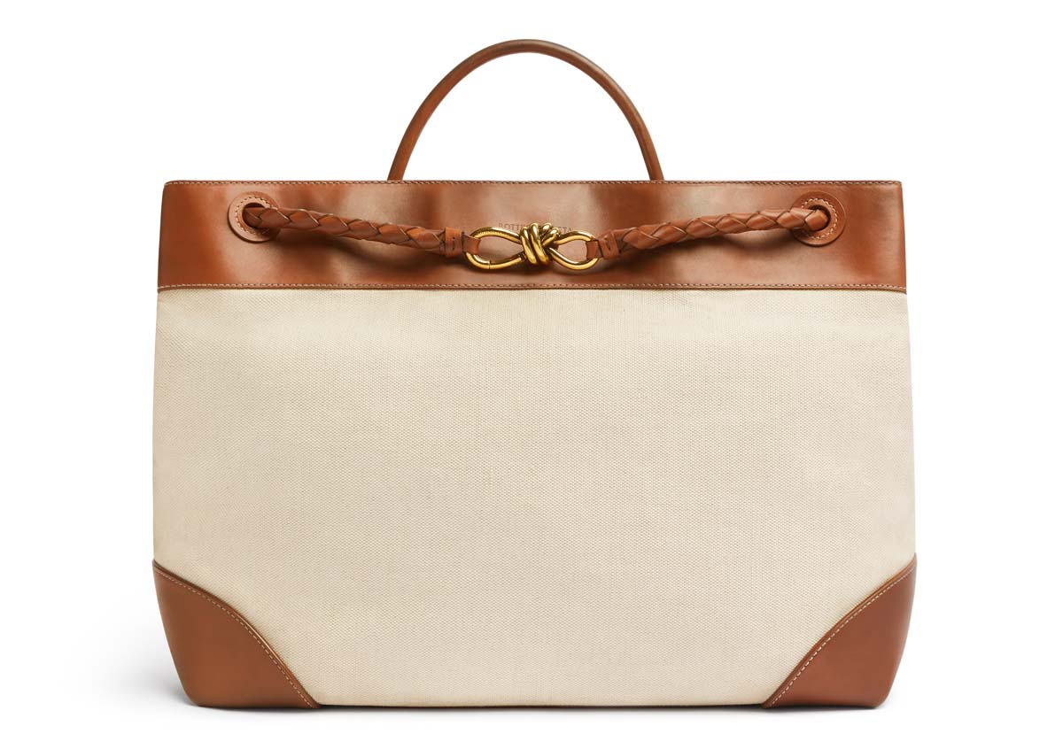 BOTTEGA VENETA 2024年サマーコレクションから、ウォッシュドブリストルカーフスキンとキャンバスを組み合わせた新作のアンディアーモが登場。