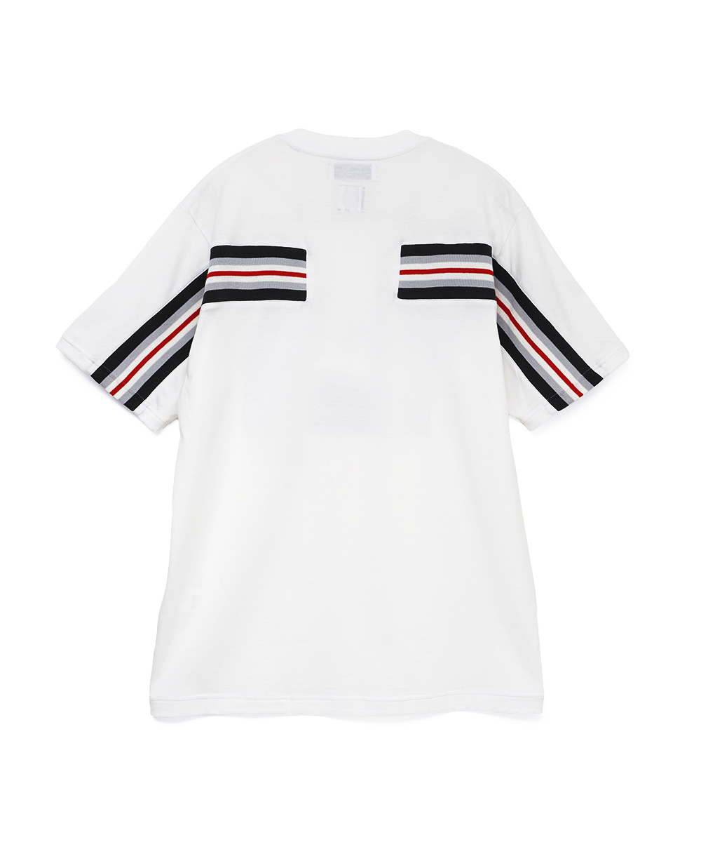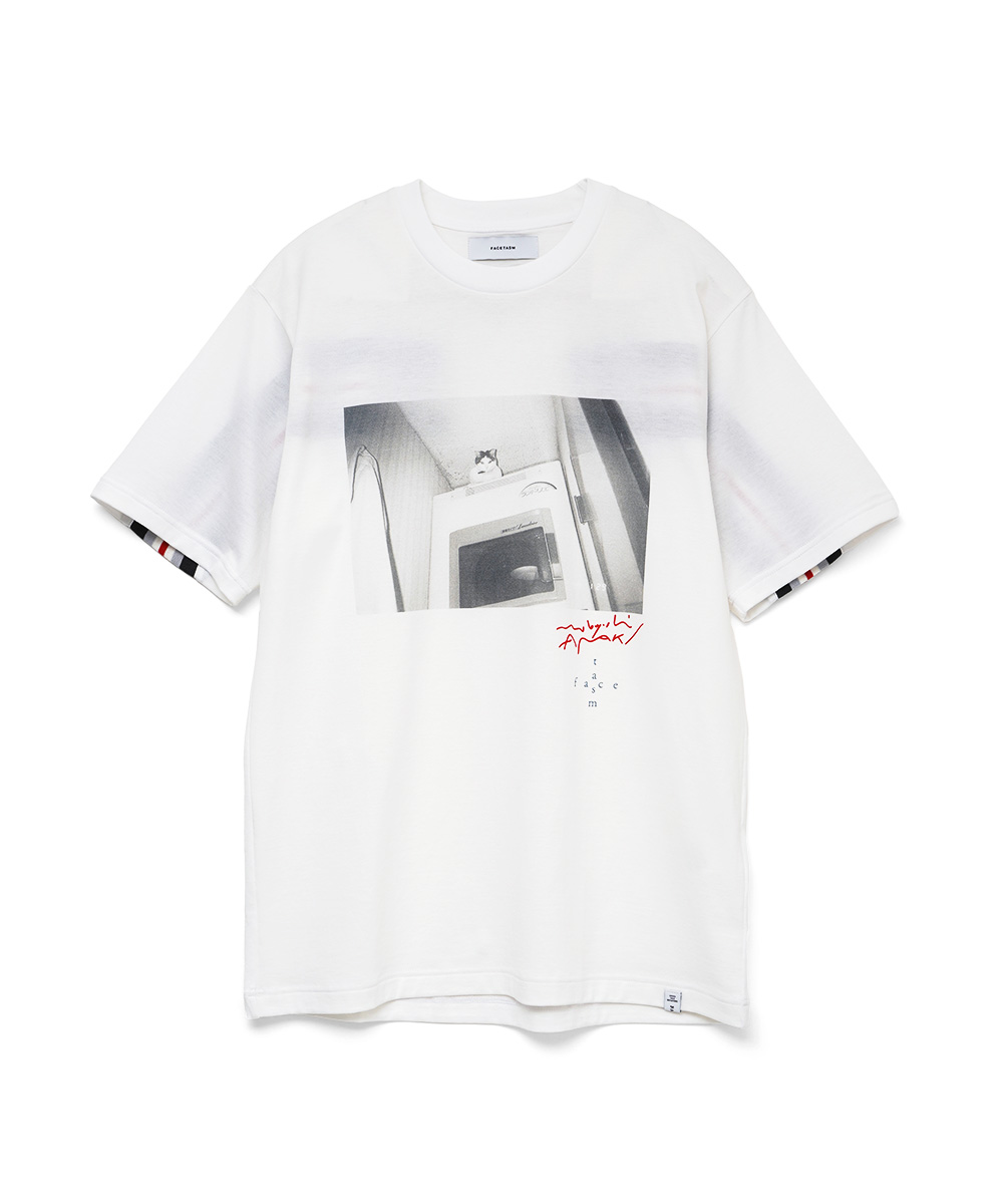 FACETASM定番の背面から腕にかけてリブを配したTシャツをベースに、フロントには荒木著書『センチメンタルな旅・冬の旅』より落合がピックアップした写真をプリント。また荒木のシグネチャーとFACETASMのクロスロゴをあしらった。