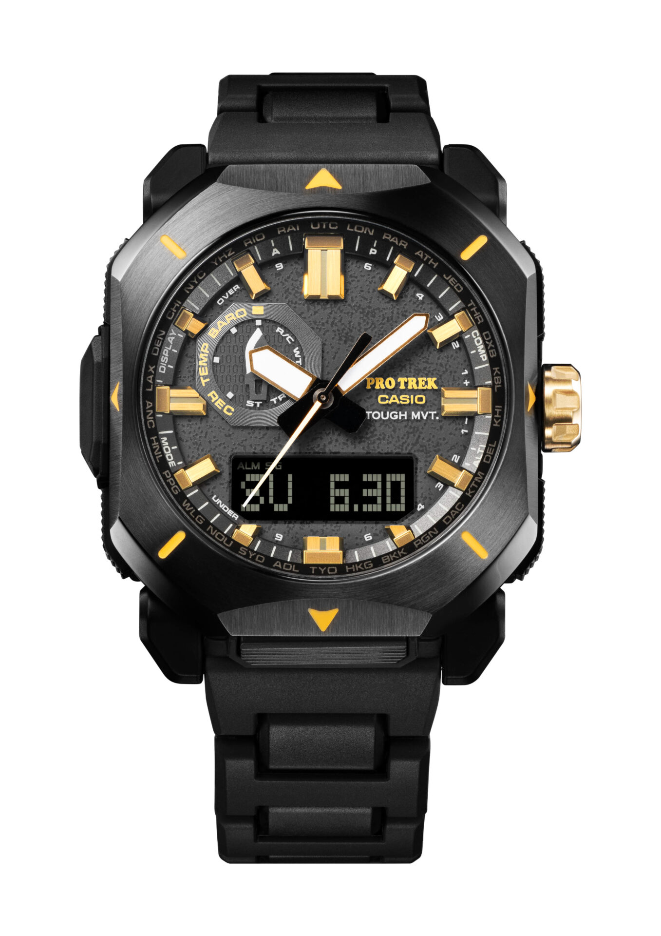 ブランド横断モデル「Zero to One」は、時計事業50周年を記念し、各ブランドの人気モデルをベースに、暗闇を照らす「はじまりの灯火」を表現したブラックとゴールドで統一。 インダイアル、裏蓋や文字板の周囲など随所にあしらった「01」の模様や、裏蓋には「カシオト ロンQW02」に施された三角形モチーフを採用するなど、記念モデルにふさわしい特別感を演出。ソーラー充電システムや電波受信機能、スマートフォンリンクなど、新たな機能を搭載しながら進化してきたカシオの腕時計を、暗闇を照らし出すはじまりの灯火に重ね表現。