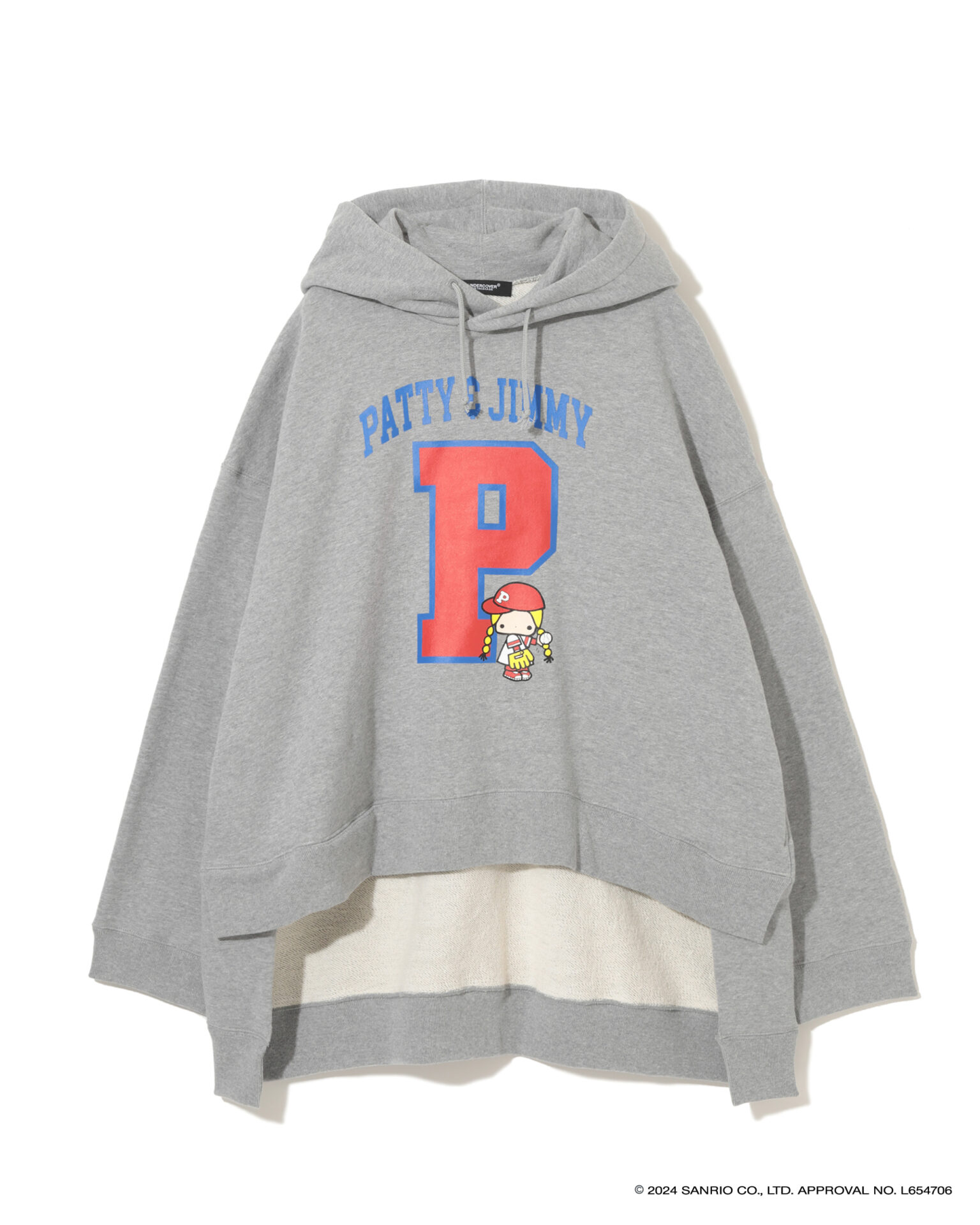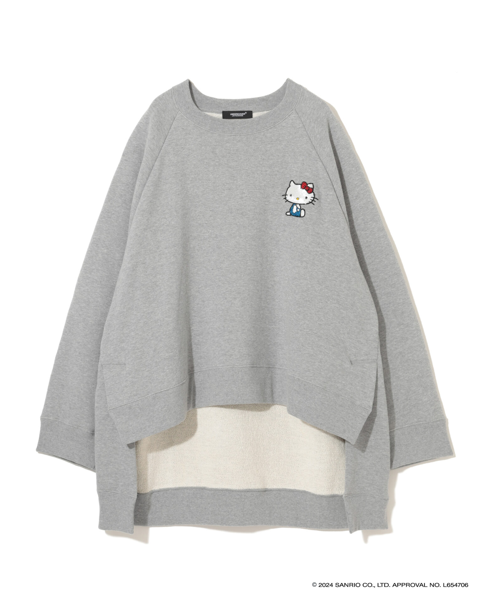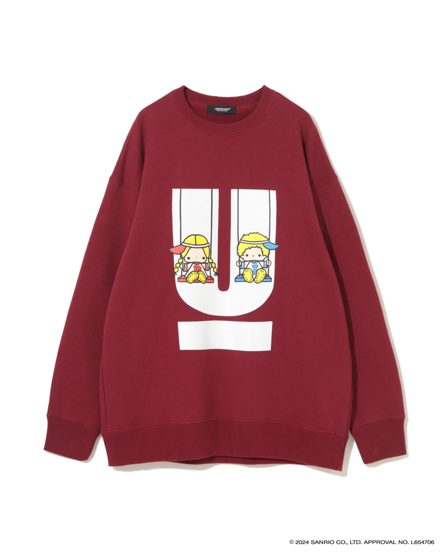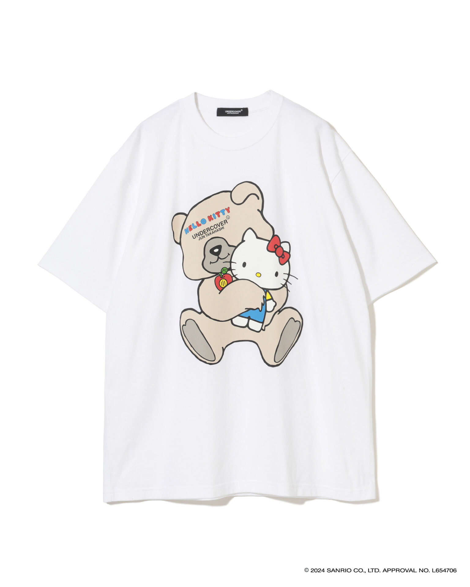 2024年で50周年を迎えた「ハローキティ」と「パティ&ジミー」、「マイメロディ」との特別なコラボを展開し、それぞれ誕生当時のキャラクターデザインを採用。UNDERCOVERのロゴやアイコンであるベアとの組み合わせ、ビーズやスパンコール刺繍で装飾したスウェットシャツ、Tシャツ、トートバック、キャップ、ポーチがお目見え。スウェットシャツは、オーバーサイズのものと、前裾が短く後ろが長いプルオーバー、フーディーの3タイプが揃う。ミニポーチやベースボールキャップも登場。