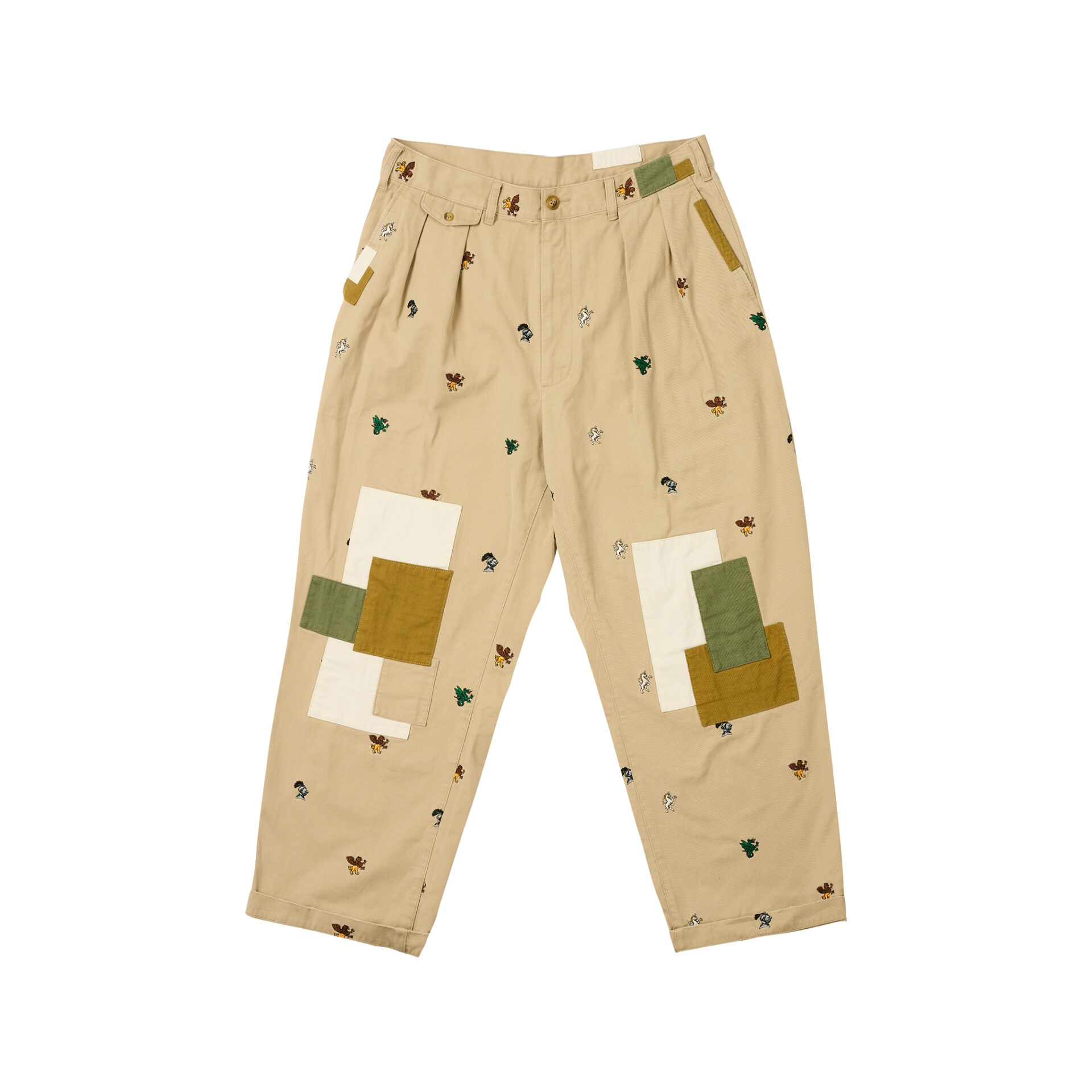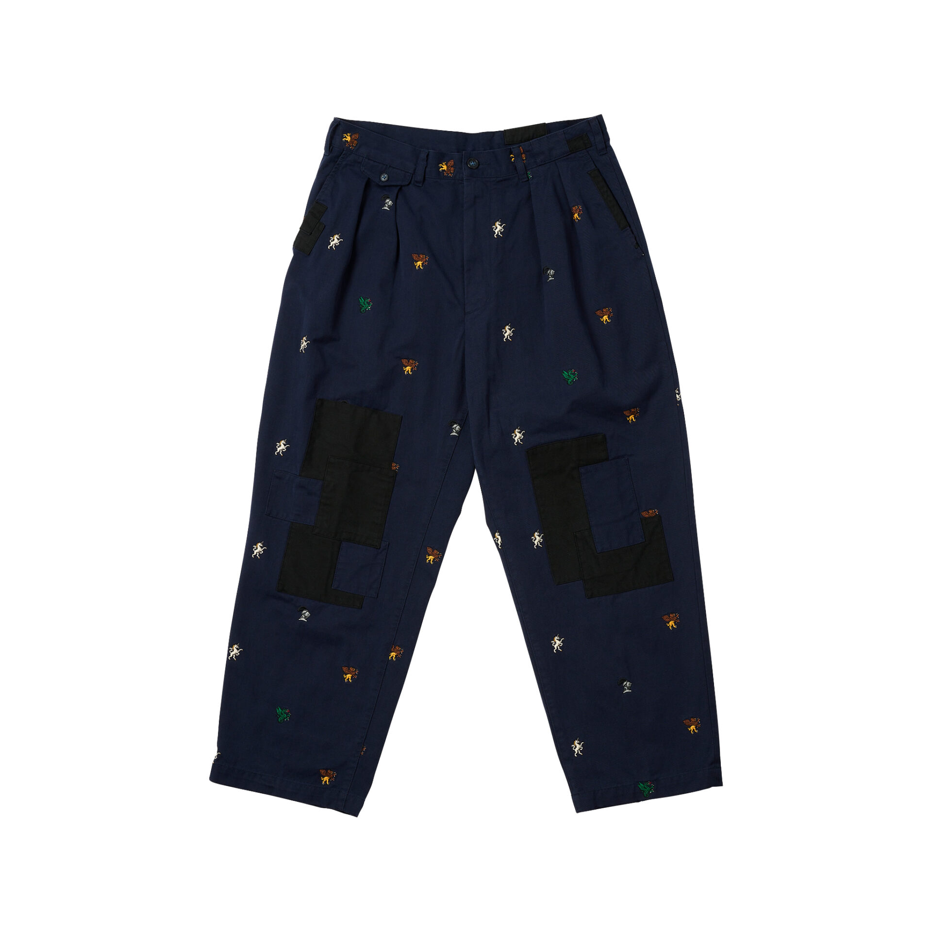 ワードローブの定番アイテムを新しい素材やカラーでアップデートしたアイテムの数々が登場。PALACE初のカジュアル・スーツは、ライトウールの杢グレー・ グレンチェック。オックスフォードブルーの無地とストライプのボタンダウンシャツ、パッチと刺繍でデザインされたベージュとネイビーのプリーツパンツ、プレッピーなケーブルニットのベスト。さらに、ハイテク・カモフラージュ柄のワークシャツと、パッチワーク柄の上質なジャカード・クルー・ニットが揃う。