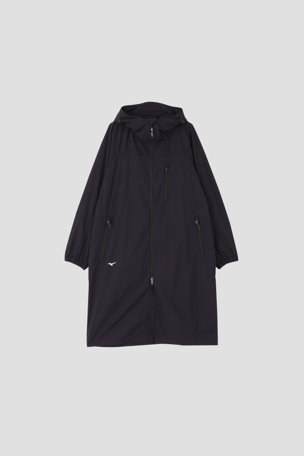 人体や自然環境に配慮したPFASフリーの撥水加工を採用。薄手でありながら引き裂き強度に優れたマイクロリップストップ素材を使用したロングコート、ジレ、トラウザーズが新たに登場。キーカラーのTEAK(ティーク)を採用した吸汗速乾性とUVカット機能を備えたジャージーや、防水機能と湿気を外に逃がす高い透湿機能を持つGORE-TEX®ジャケット、Mizuno Sportstyleを代表するランニングシューズをベースとした新しいシューズ、25L容量で使用者の用途に配慮したデザインのバックパックがラインナップに加わった。