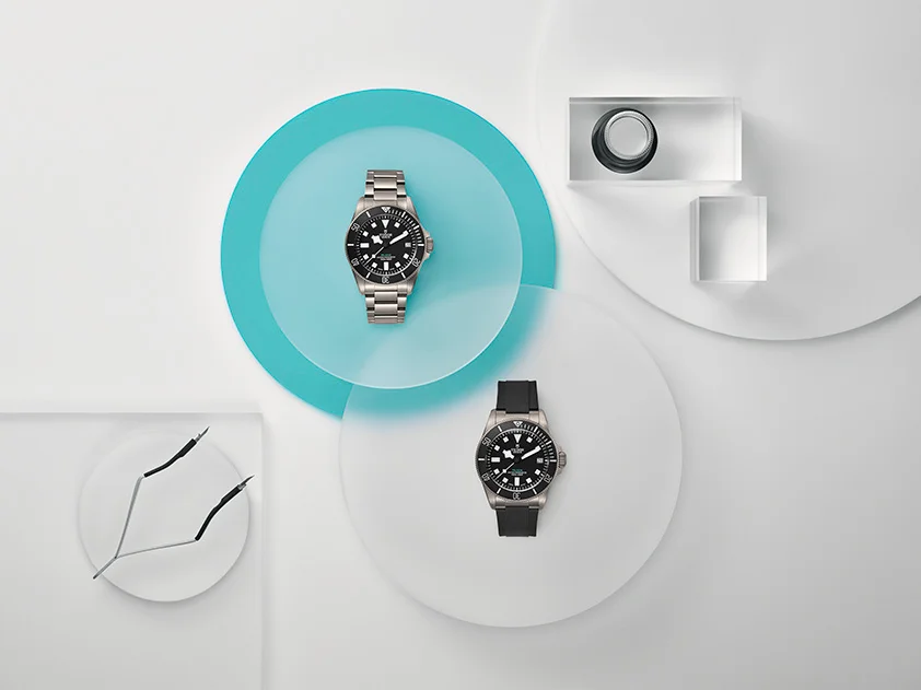 PELAGOS史上最強の性能を誇る新モデル「PELAGOS ULTRA」が登場。1,000mの防水性能を備え、43mmのチタニウム製ケースに新しいブレスレットアジャスト機能を搭載。深海の過酷な環境に対応するため、TUDORの技術革新を象徴するモデルとして、METASの「マスター クロノメーター」認定を取得。視認性向上のため、ブルーとグリーンの2色の夜光を採用し、深海ダイビングの要件を満たす設計に。次のレベルの深海探査を可能にする一本であり、未知の深海へ挑む時計としてTUDORの技術革新を体現。