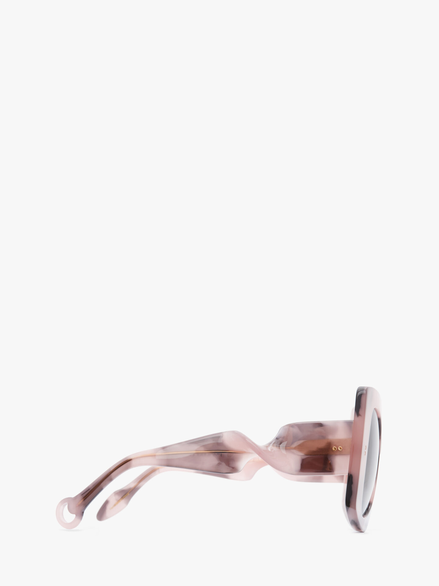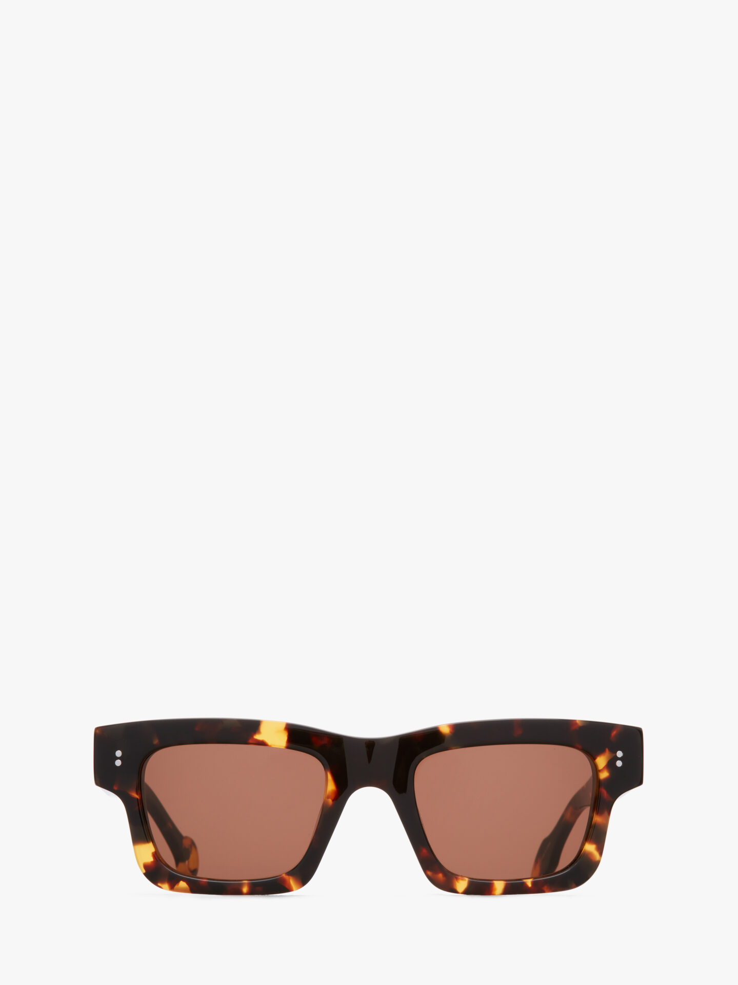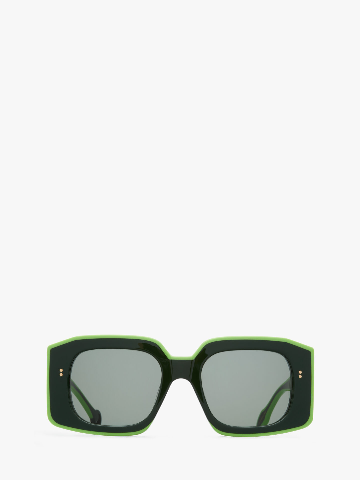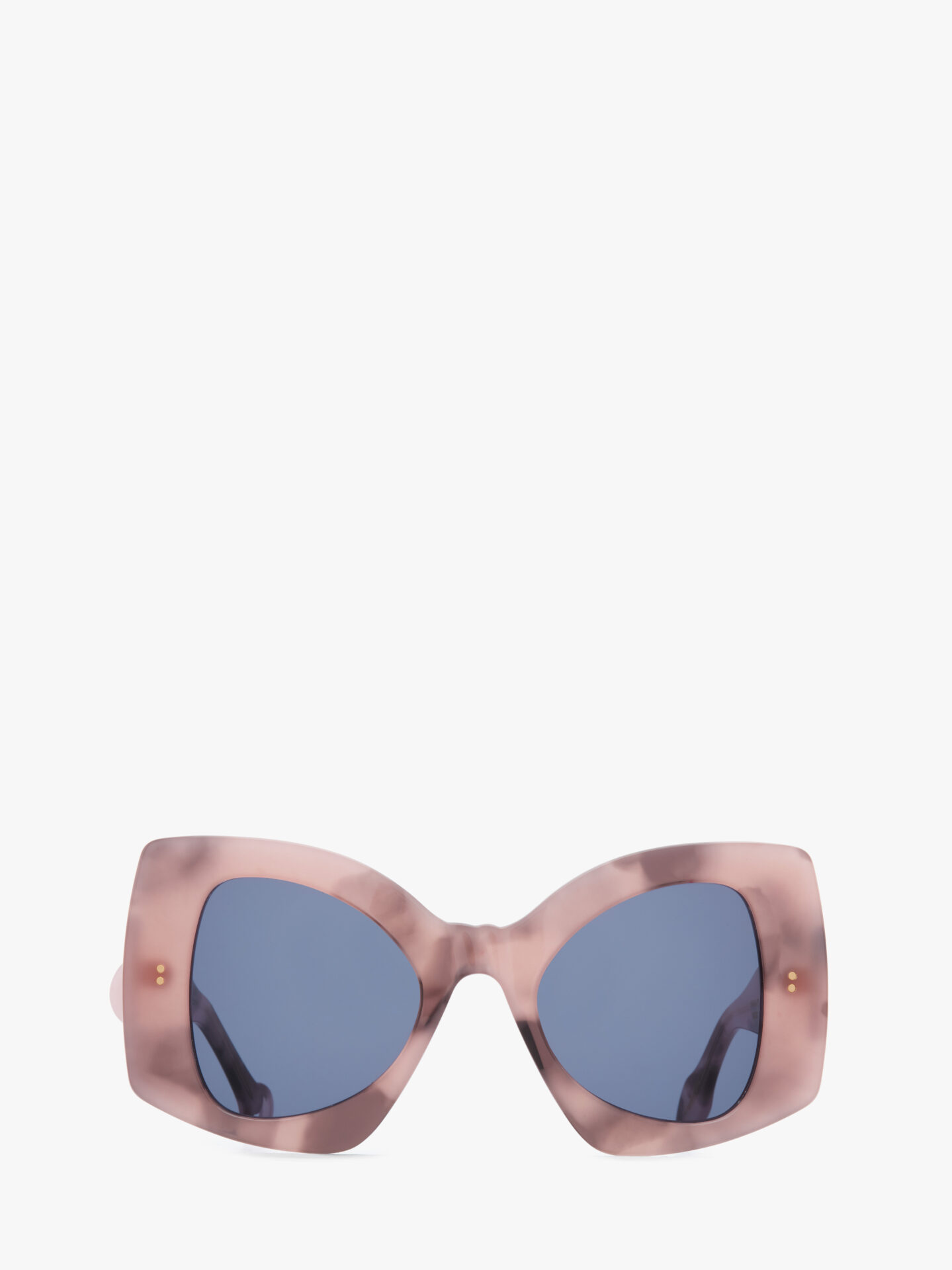 クラシックなシルエットと視線を集めるデザイン要素を取り入れ、ブランドが誇る大胆なコンテンポラリーデザインや機能性を兼ねる。各ピースは幅広いカラーパレットのワンサイ ズで展開され、高品質なイタリア製のMazzuchelli アセテートを用いて作成。各モデルには、マッチするフェイクファーケースが付属。ケースにはパッドと裏地が付いており、フレームを保護しながらラグジュアリーな感触を楽しめる。