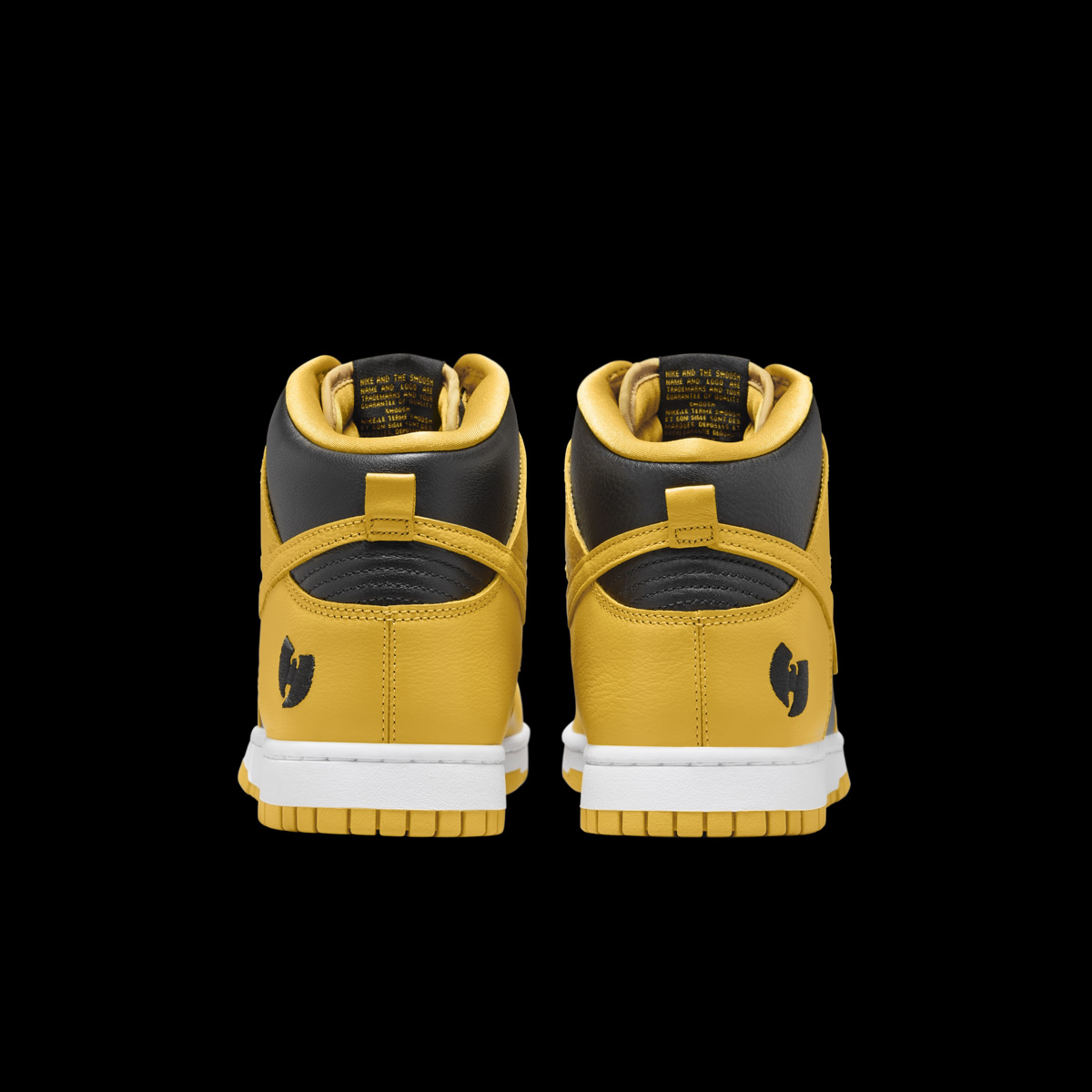 今回の「ダンク HIGH」は、オリジナルの「キラビーズ」カラーブロッキングを忠実に再現し、ブラックとポレンの配色で彩った。高品質なレザーが使われ、ウータン・クランの象徴的な「W」ロゴがシュータンラベルとヒールの外側に刺繍されている。