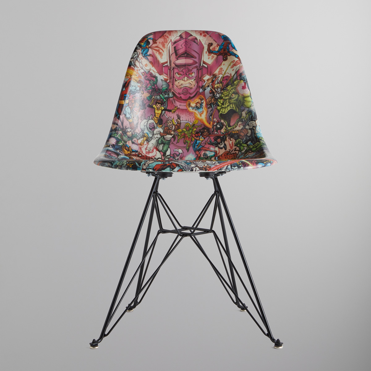 ラグジュアリーホームブランドのMODERNICAとのパートナーシップにより、「Fiberglass Shell Chair」のカスタムバージョンを製作。チェアには、Marvelのアーカイブグラフィックを全体にあしらい、共同ブランディングの「Kith Universe」ロゴと、チェアの底面にはKithHomeのプレートが付属する。