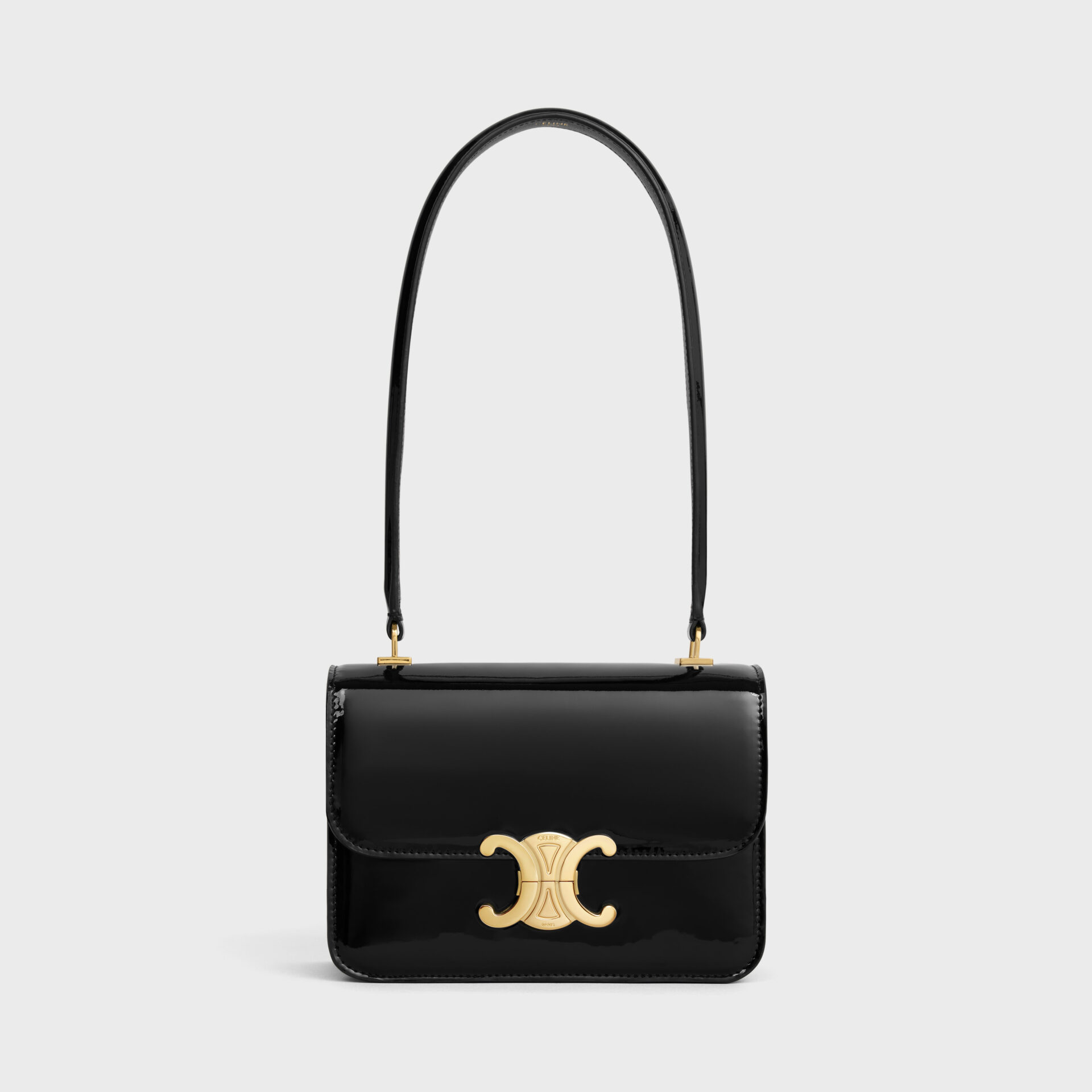 メゾンのアイコンバッグである「TRIOMPHE(トリオンフ)」を彷彿とさせるヴィンテージゴールド仕上げのクラスプと、丸みを帯びた長いハンドルが特徴のトップハンドルバッグ。ショルダーバッグとして持つことができるほか、ハンドバッグとしても持つことができる。ローエッジと内縫いの技法を組み合わせて製作している。