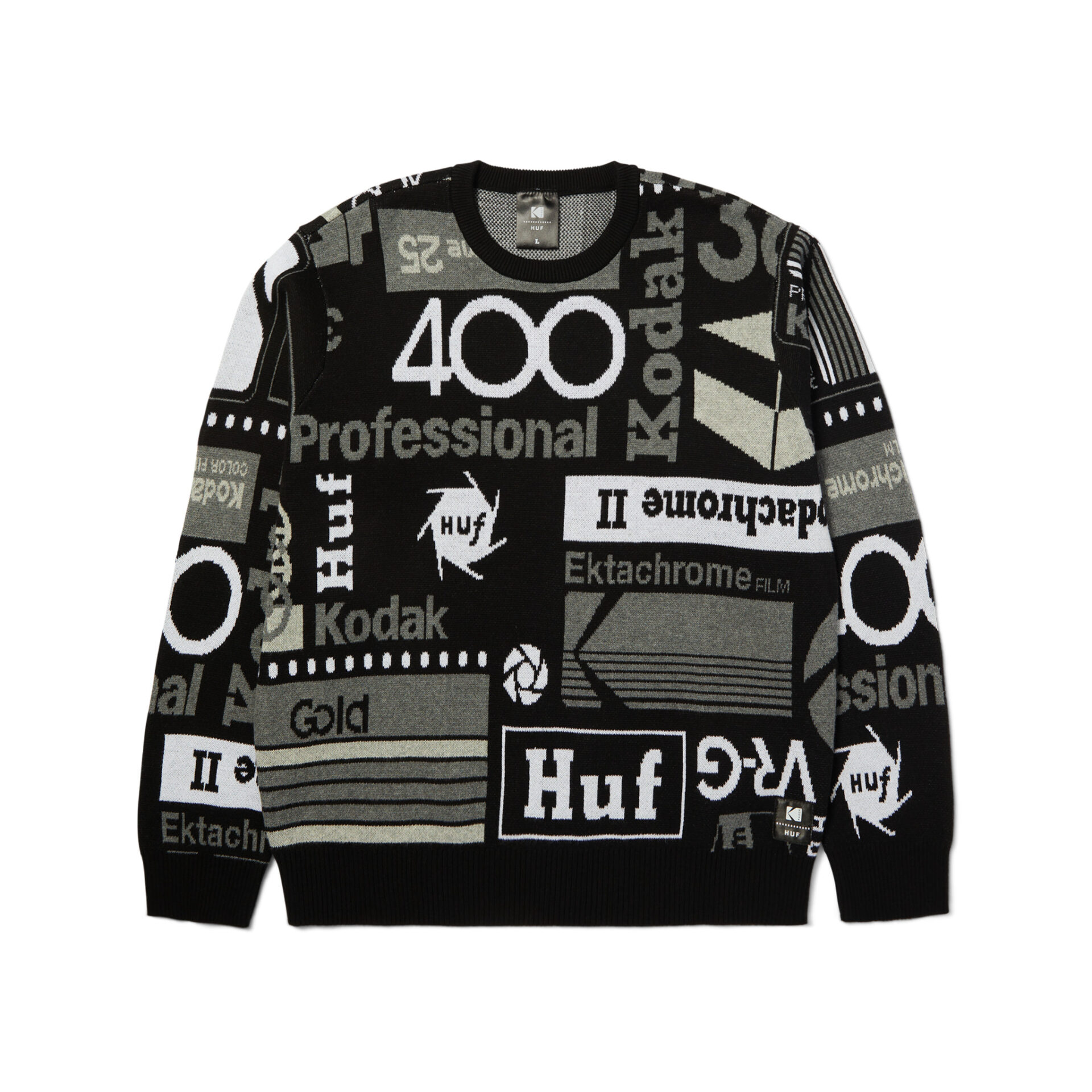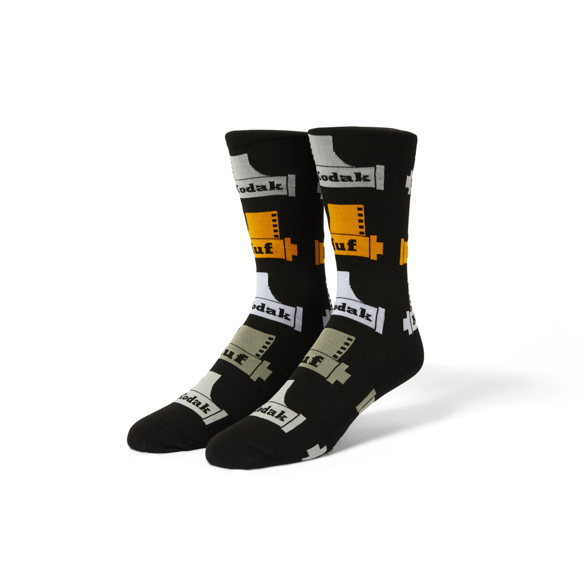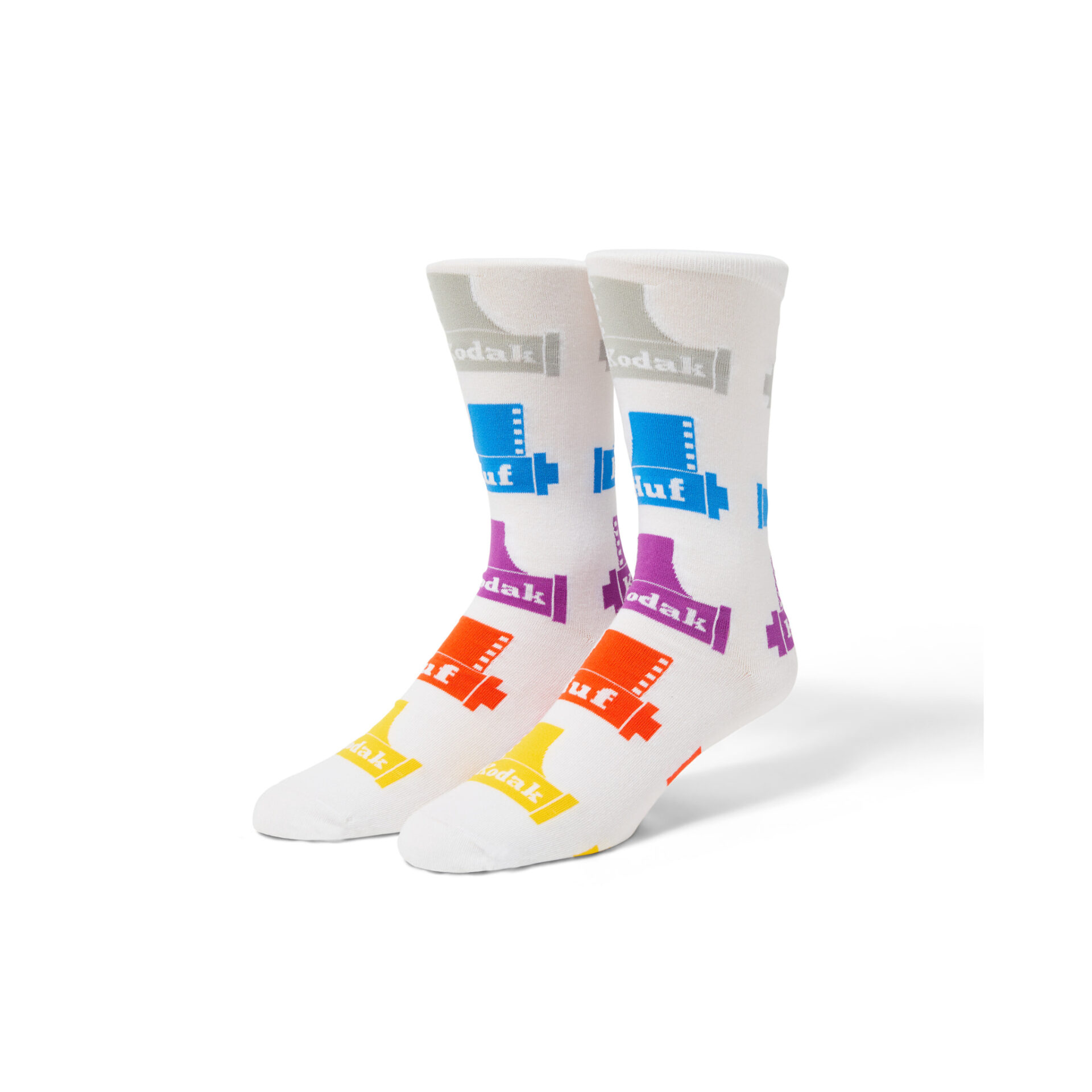 レトロなKODAKのグラフィックと、フィルムのみで撮影された新しい写真をミックスした本コレクションは、オーバーサイズのプリントや、KODAKのアーカイブから掘り出したクラシックなロゴ、アクセサリーやコラージュ写真がプリントされたCollage Filmer Skate Deckなどをリリース。1つのフレームに2つの写真を収めることができる「Kodak Ektar H35Nハーフ・フレームカメラ」をコラボ使用にカスタム。通常のフィルムの2倍の写真を撮影することが可能で、光沢のあるHUFグリーンのフロントとHUFのロゴが入ったアクセサリーが特徴的。