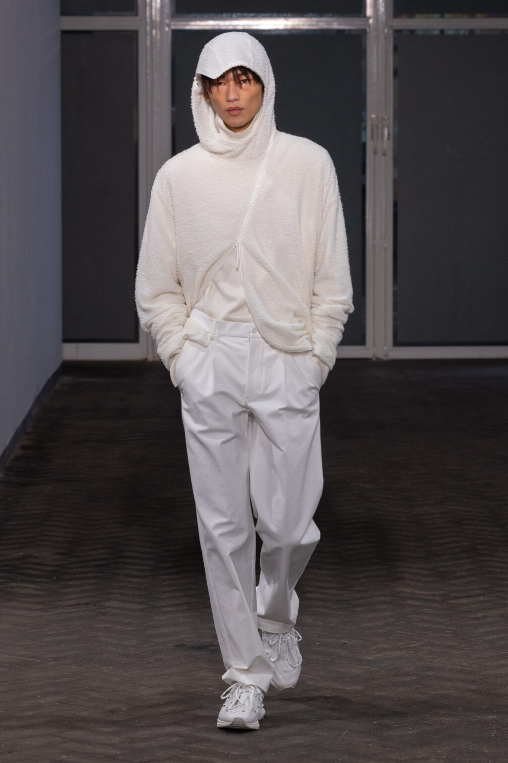 シューズとのトータルコーディネイトが可能なアパレルもラインナップ。「Trail Balaclava-T PAF」は、多彩なシーンで着られるプロテクション性能と独創的なシルエットを兼ね備えたテクニカルウェア。フラットロックシーム、親指ホール、反射ディテール付きのフードを採用し、優れた機能性を実現しつつ斬新なデザイン美学を表現。ボトムスには、汎用性と機能性に優れた「Zero Pants」をHayとAloeの2色で展開。