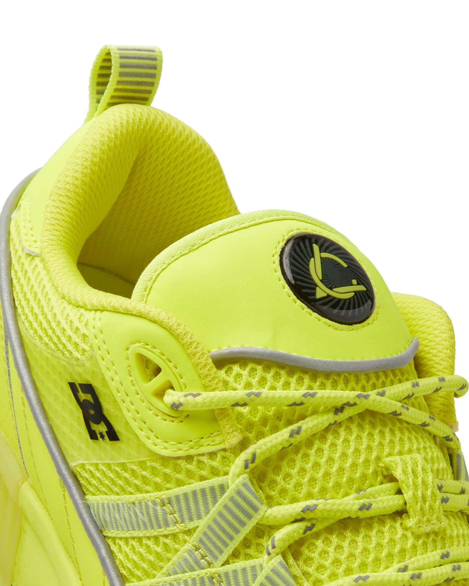鮮やかなネオンイエローのプレミアムレザーとメッシュを組み合わせたアッパー、衝撃吸収などの機能を備えた半透明のソールが特徴。シュータンにはルシアンのシグネチャーの「Eye of the hurricane(ハリケーンの目)」を配し、スケートボードとファッションを融合させ、比類のないスタイルとパフォーマンス性を兼ね備える。