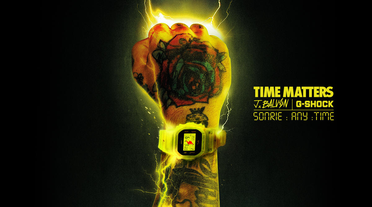 G-SHOCK、J.バルヴィンとのコラボアイテム発売。ライトニングボルトとシグネチャーをあしらった交換バンドとベゼルなど