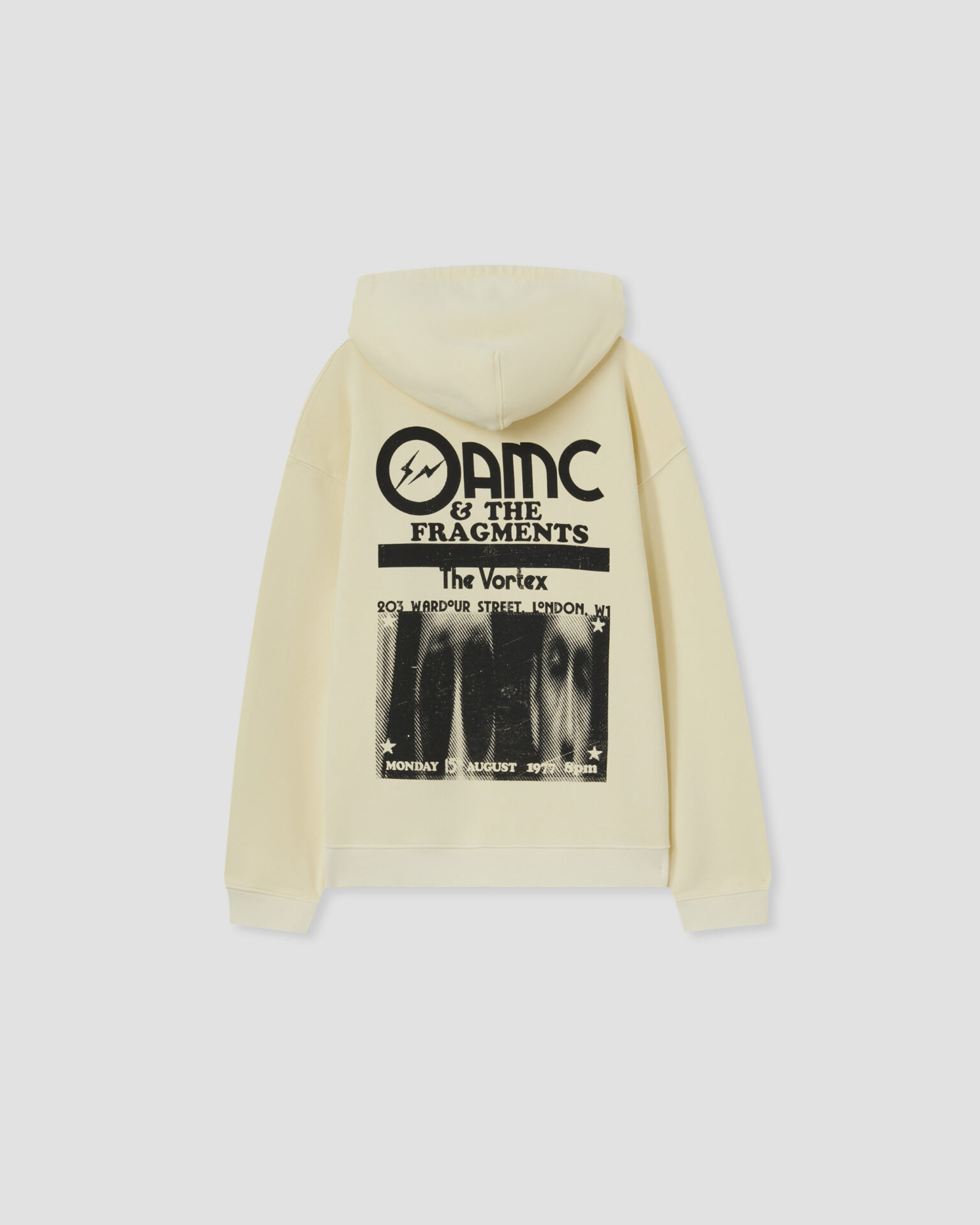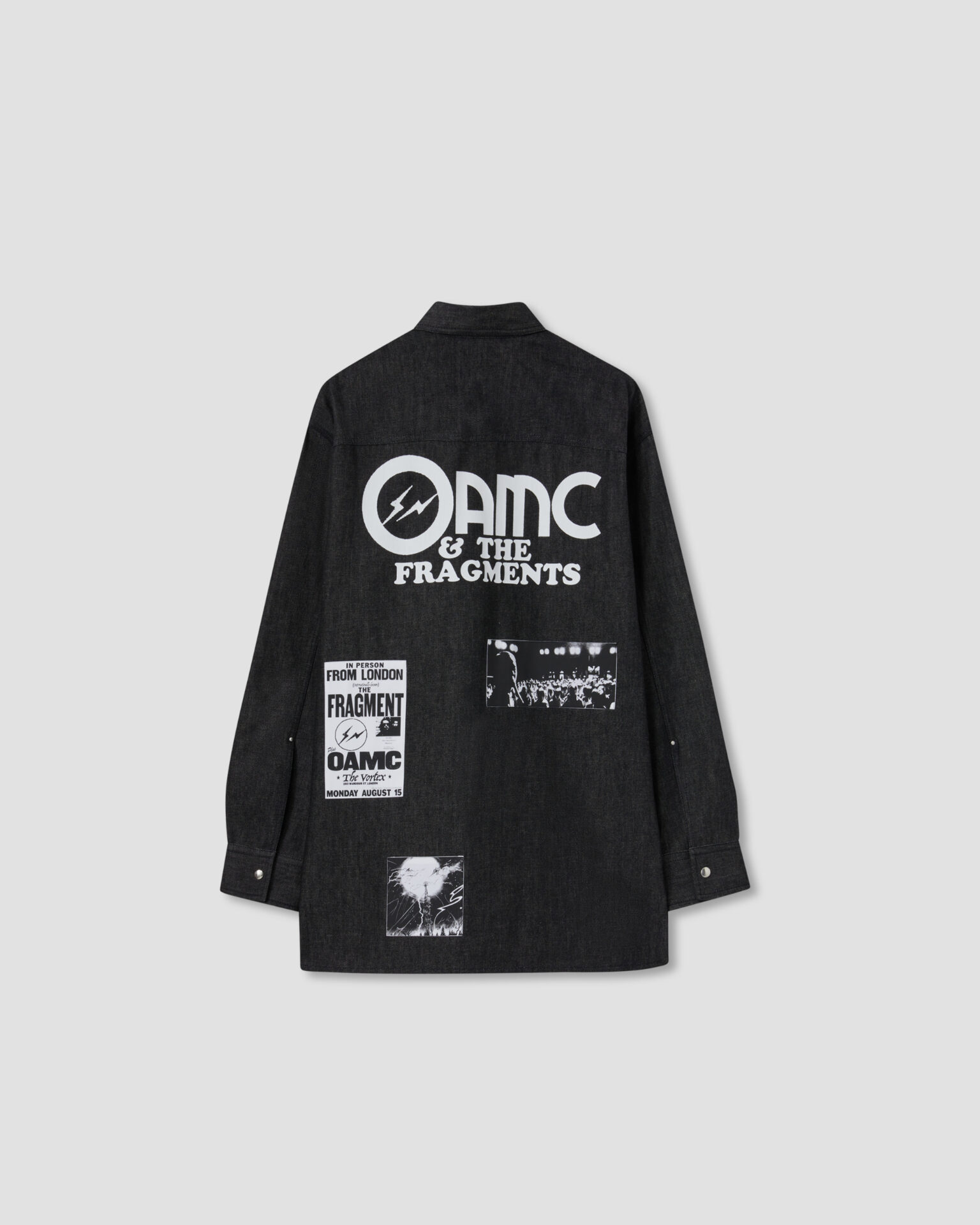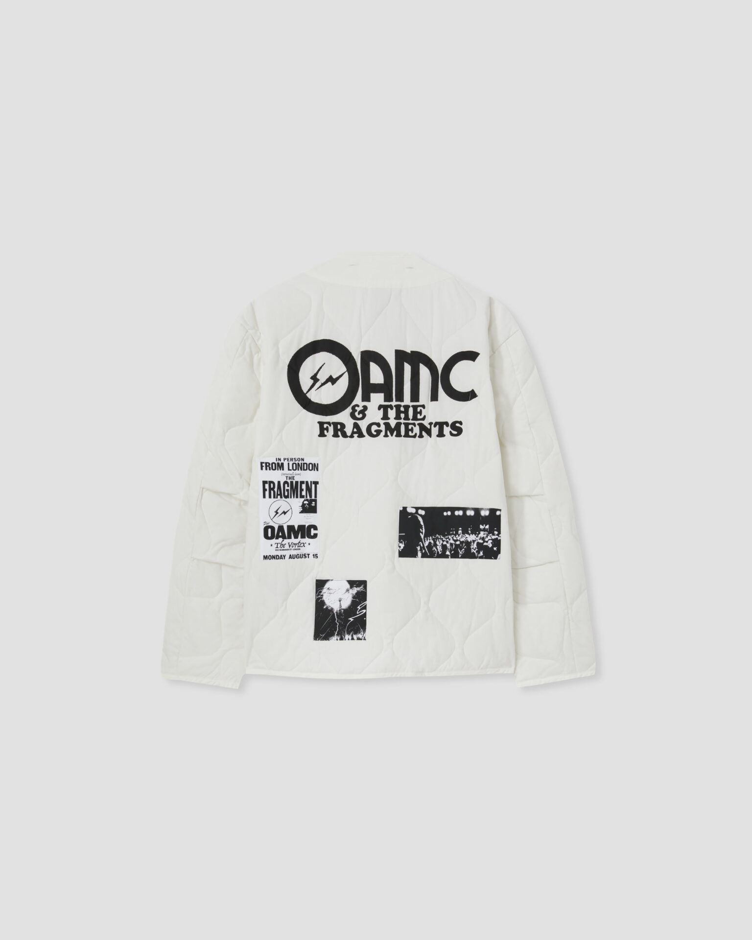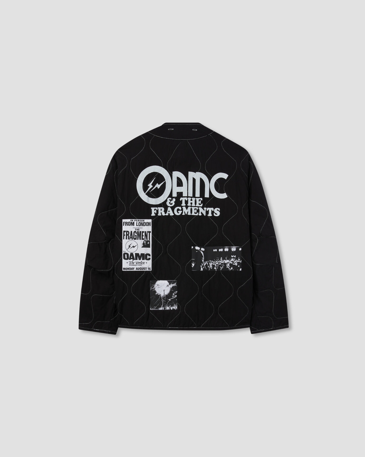 カスタムデザインのアートワークがコットンパッチにプリントされ、OAMCとfragmentのロゴが直接ウェアにプリント。ウォッシュ加工のポリアミド素材でパッド入り全面裏地付きのボンバージャケット、コットンポプリン素材のオーバーサイズのパッド入りキルティングライナー、オーガニックコットンデニムで作られたオーバーシャツ、フード付きスウェットシャツ、プレミアムオーガニックコットン素材の長袖・半袖Tシャツの6点がラインナップ。