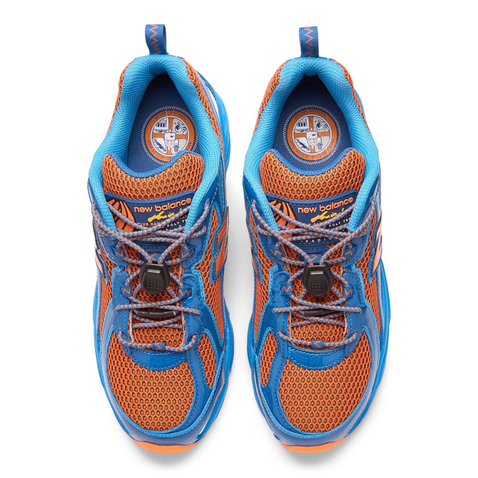 ベンソン工業高校のチームカラーであるロイヤルブルーとオレンジが採用され、合成皮革のオーバーレイやABZORBミッドソールにロイヤルブルー、メッシュのアンダーレイや“N”ロゴ、アウトソールには鮮やかなオレンジが配されている。また、シュータンにはアミーネの卒業年と『KBPS』への参加を記念するタグ、インソールには母校の紋章があしらわれ、細部にまでこだわりが光る一足となっている。