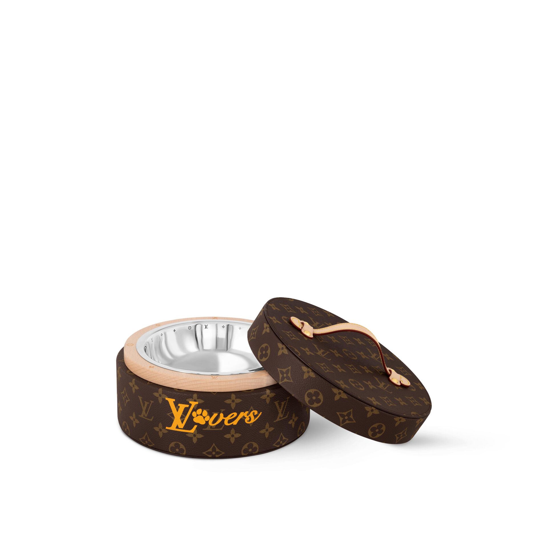カウハイドレザーを使用した「ドッグ カラー」は、モノグラムキャンバスで仕上げられたデザインとゴールドカラーのメタルで象られた「LV Vers」のメダリオンが特徴。ホットスタンピング(焼印)で、オリジナル感をさらに高められる。「ドッグ リーシュ」は、モノグラムキャンバスのストラップとヌメ革のレザーハンドルを組み合わせ、ペットを安全に保ちながらスタイルを楽しむことができるアイテム。ゴールドメタルのフックが「ドッグ カラー」や「ドッグ バッグ ホルダー」にも取り付け可能で、散歩の際にエレガントなアクセントを加える。ホットスタンピングを施すことで、さらにパーソナルなデザインに。「ドッグ ボウル モノグラム」は、モノグラムキャンバスに「LV Vers」ロゴと肉球モチーフをあしらった。容器の底には、ボウルを固定するメタル製の足付き。