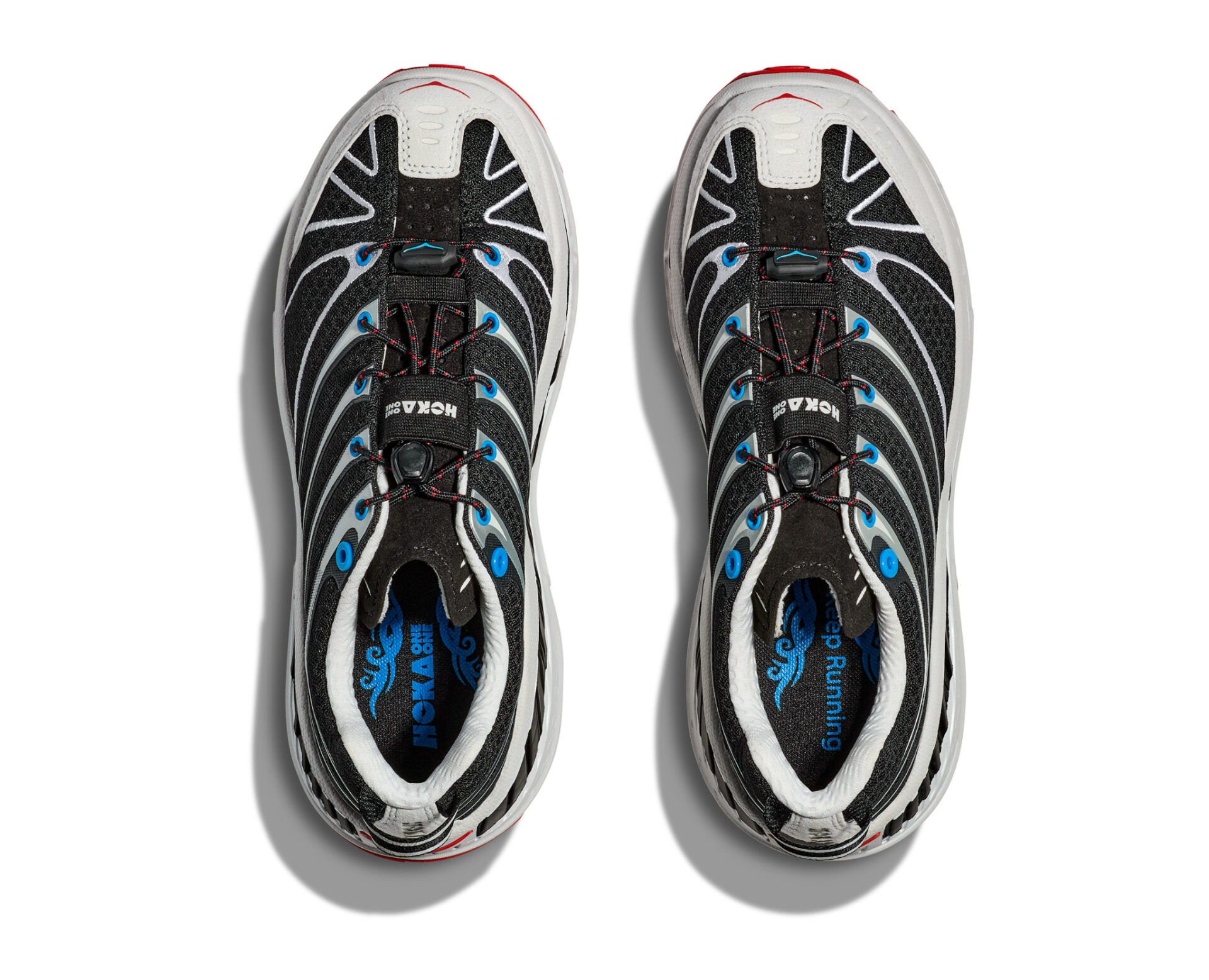 HOKA独自の最高のクッショニングとロッカーテクノロジーに、2000年代初頭のHOKAブランドの特徴的なデザインやディテールをあしらっているこのモデルは、通気性の良いメッシュアンダーレイにTPUフィルムオーバーレイをアクセントにしたアッパー、簡単に着脱できるスピードレーシングシステムを採用。刺繍のディテールとマイクロファイバーのトゥキャップが洗練されたタッチを加えた、HABANERO/BLACKとBLACK/COSMIC GREYの2色を展開。