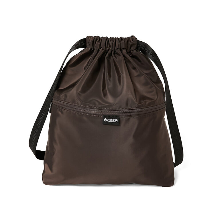メインコンパートメントに内ポケットがついたシンプルな構造。内ポケットにオリジナルミルスペック、フロントにサイズスペックをアタッチ。口紐は握りやすいチューブ状のコードエンドを採用し、しっかりとロックできるストッパー付き。サイドには両ブランドの織りネームを配置。軽量で柔らかく、上品な微光沢のOUTDOOR PRODUCRTSオリジナルのナイロンを使用している。