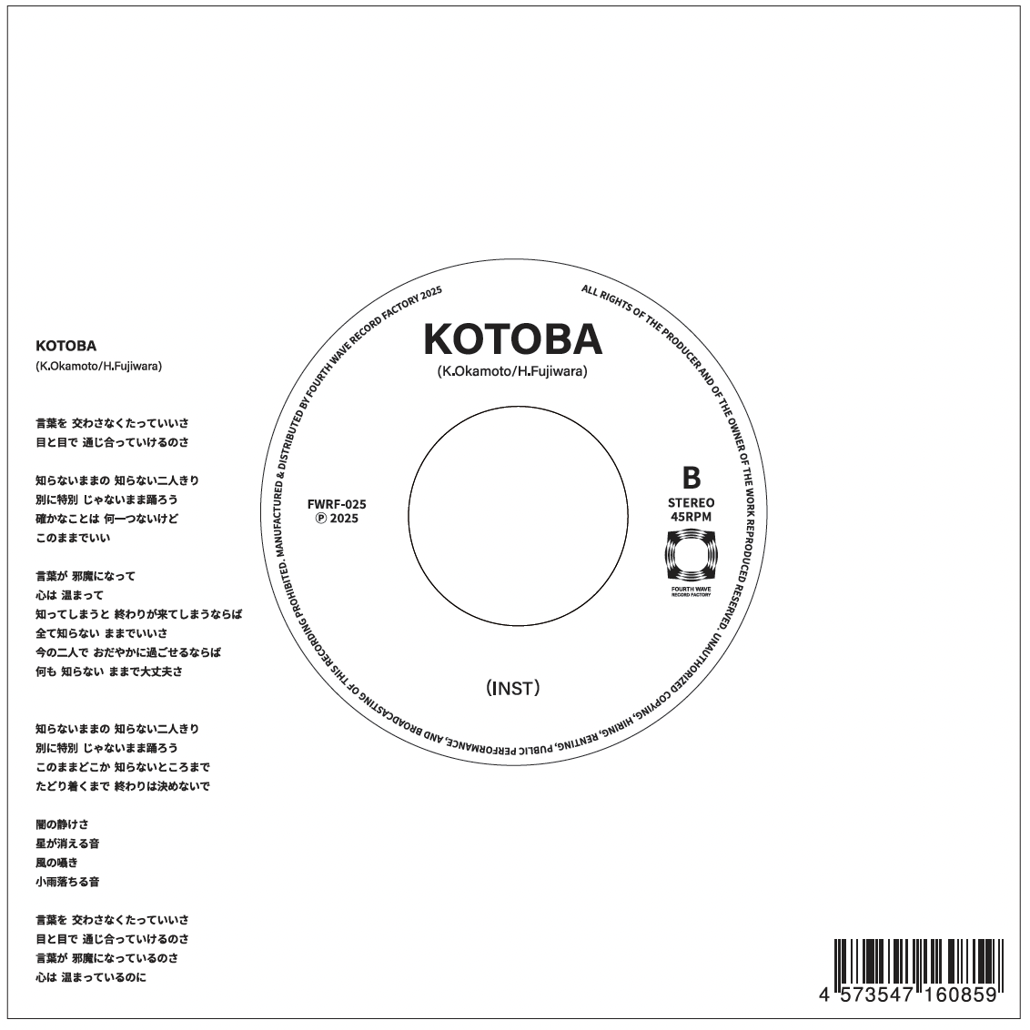 HFこと藤原ヒロシによる書き下ろしの新曲「KOTOBA」がリリース。7月21日(月)より7インチレコード仕様で発売。