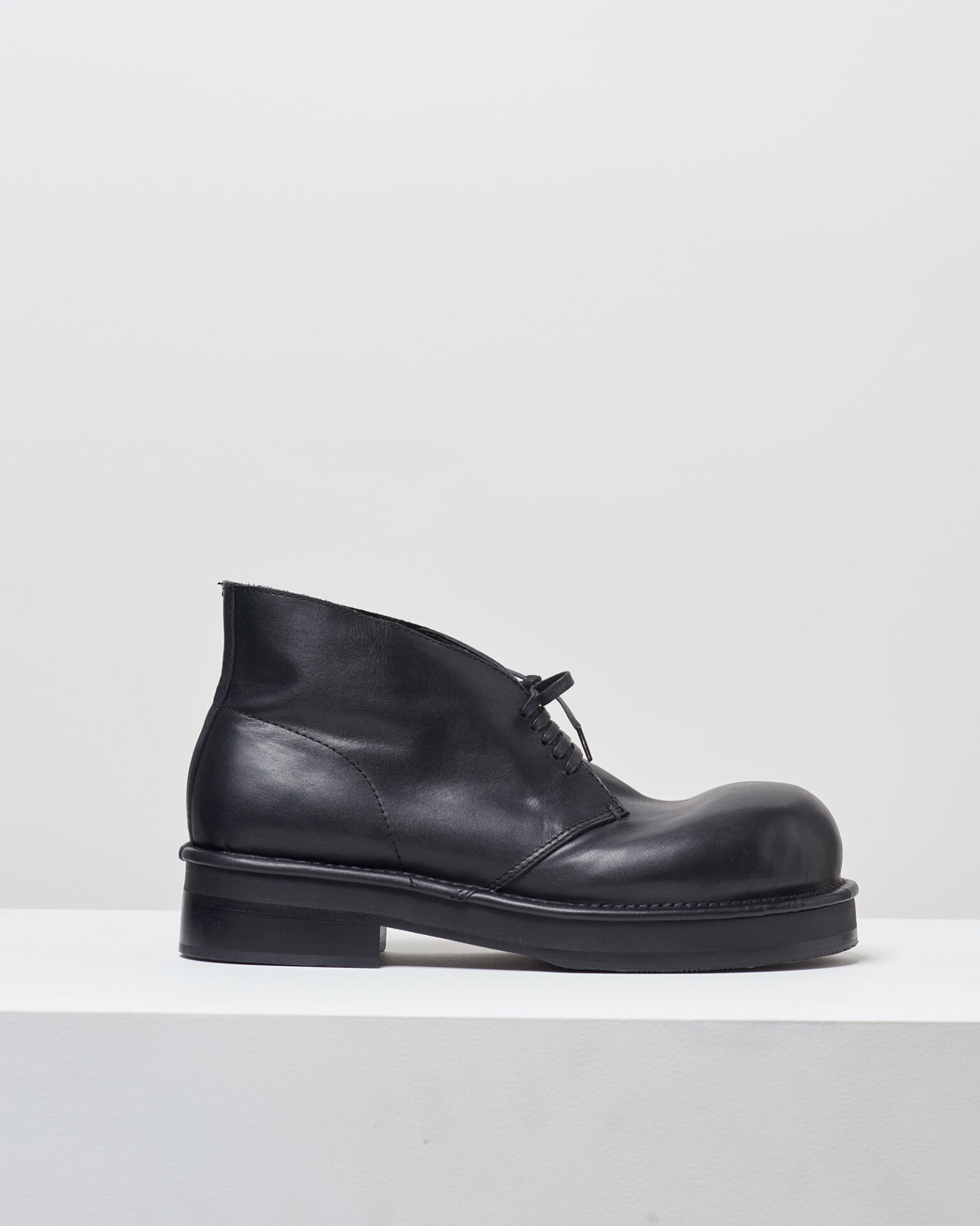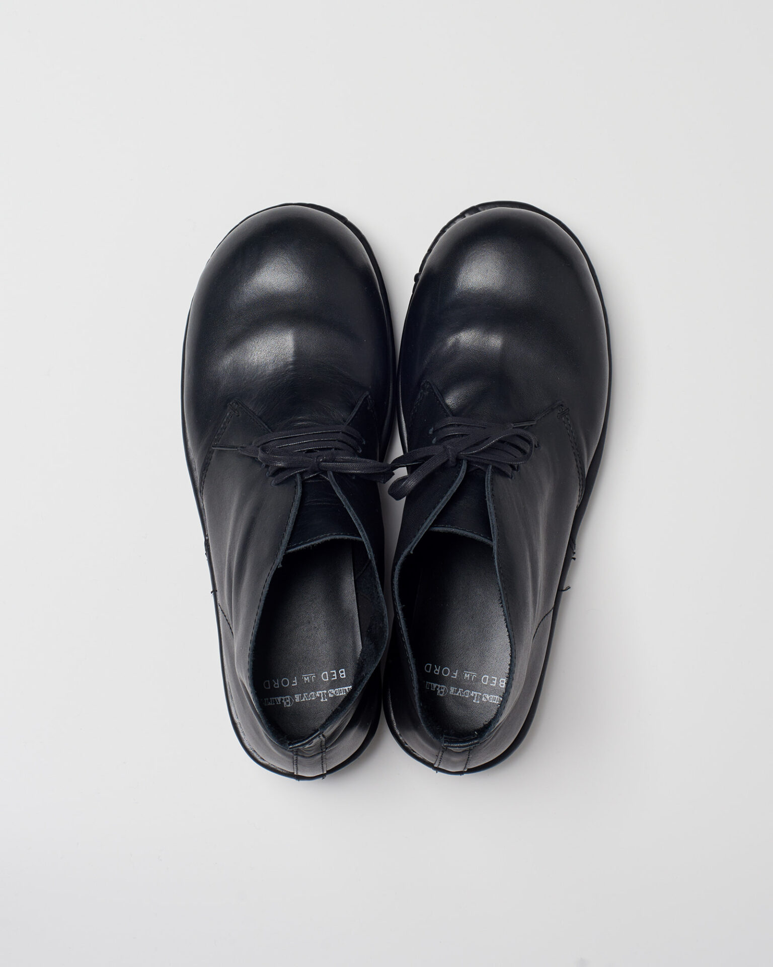 特殊な技法により 従来のKIDS LOVE GAITEが持つボリュームをより一層に誇張し、エンジニアブーツ、チャッカブーツ共にブラックは表側のレザー、ブラウンは裏側のスエードでラインナップ。