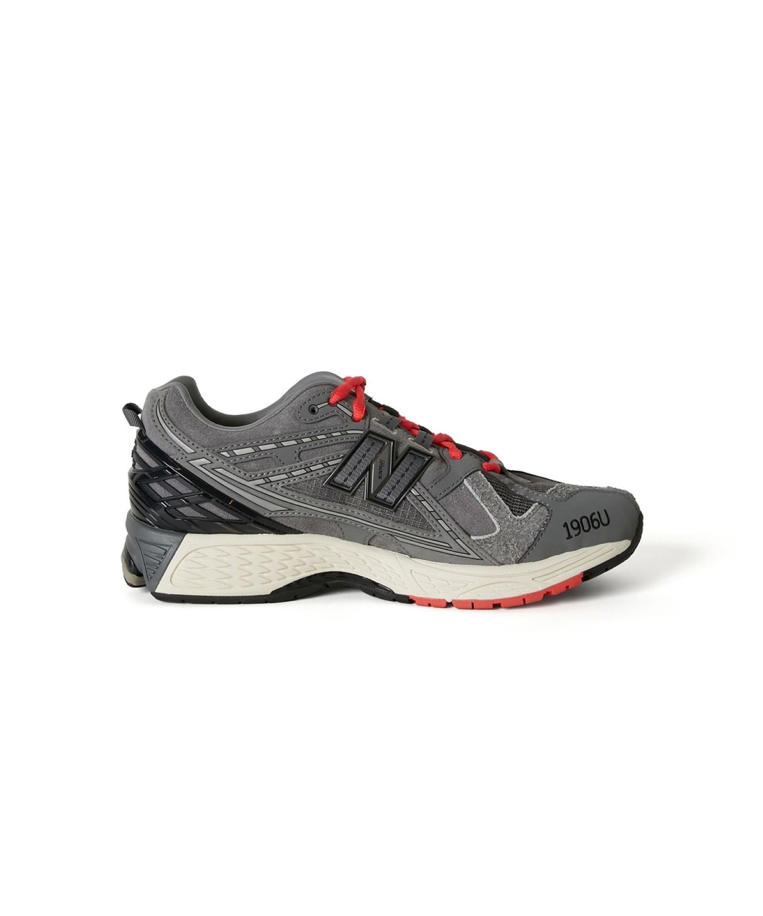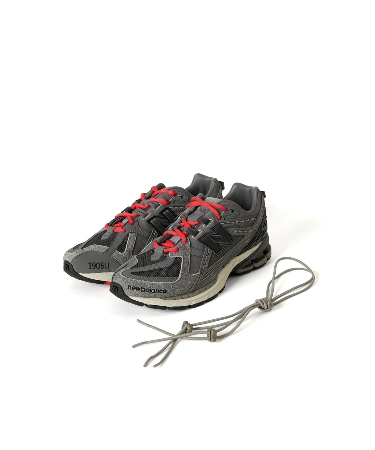 昨年リリースしたコラボモデル「M1906NIH」の素材使いを踏襲した「1906U」の新色を別注。N.HOOLYWOOD TEST PRODUCT EXCHANGE SERVICEとINVINCIBLE®︎が手がけた今回のカラーリングは、落ち着いたグレートーンを基調としながらアクセントに赤をソールに配色。甲周りのフィット感を向上させる「N-LOCK」とシューレースホールは、左右で異なる配色にデザイン。アッパー全体を流動的に覆うリフレクター、グリットメッシュ、リップストップ、ヌバック、毛足の長い起毛スエード、合皮を使用しながら絶妙なグレートーンを構築。トゥには「new balance」のロゴと「1906U」を刺繍。ストッパー付きのシューレース他、結び目がほどけにくいNew Balanceオリジナルのシューレース付き。高い衝撃吸収性と反発性を誇るN ERGY(エナジー)とABZORB(アブゾーブ)を搭載したハイスペックソールユニットを採用。