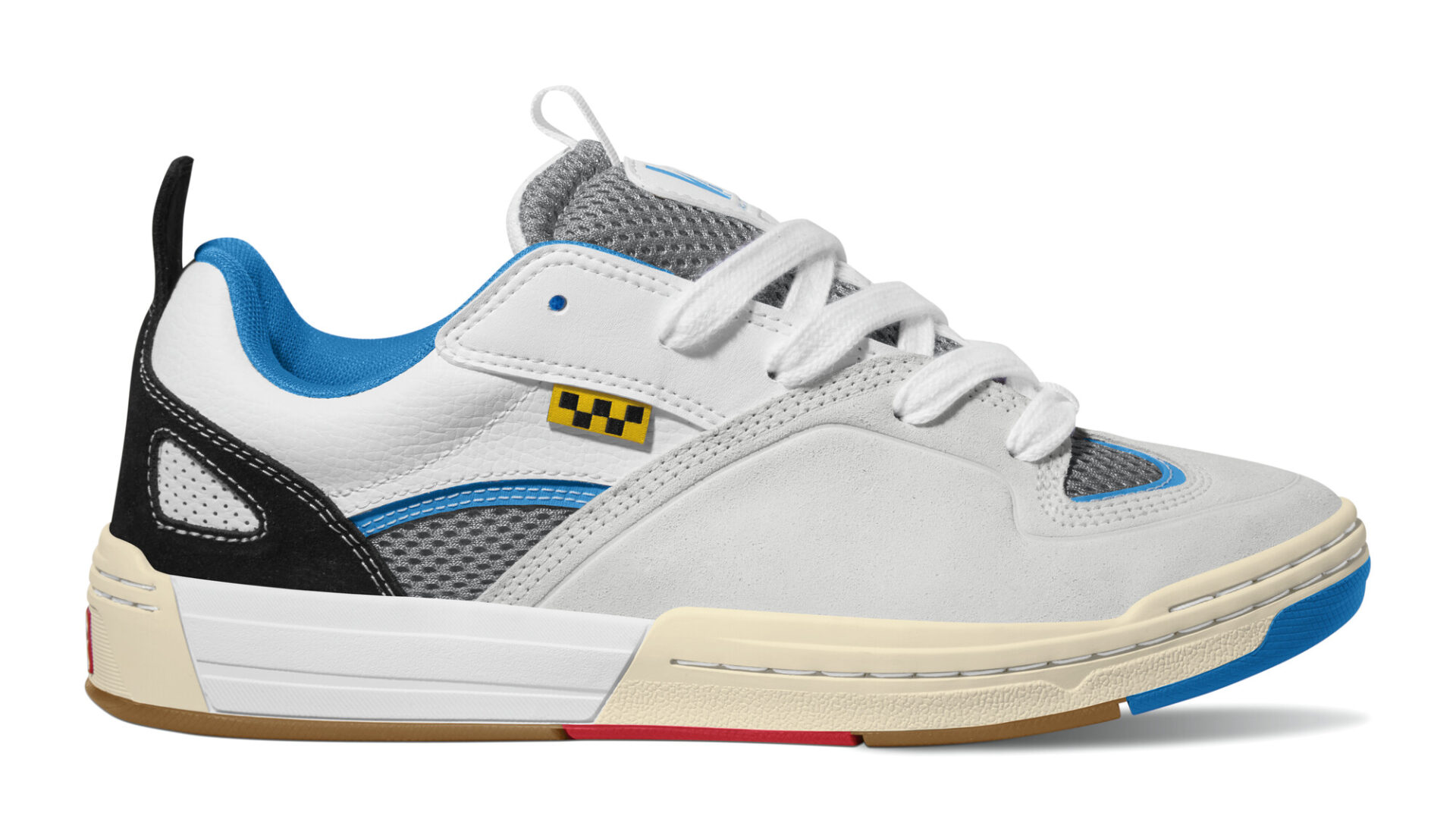 アッパーに縫い付けられたカップソール、「レースホルダー」を採用したシューレースシステム、 幅広なシューレース、大胆なカラーブロック、レトロなVANSロゴなどが特徴。