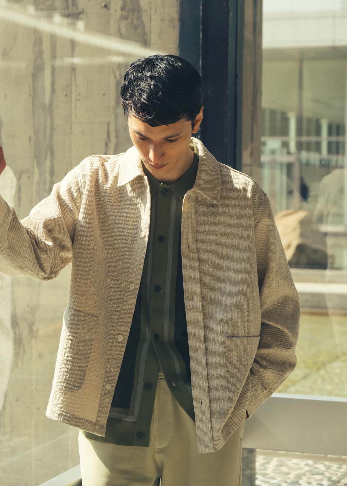 定番のニットウェア、キルティングライナー、シャーリングに加え、春に合わせたアクセサリーを取り揃え、ナイロン、ポリエステル、コットンフリース、イタリアンスラブブークレー、サテンなどの軽やかな素材をコレクション全体に散りばめた。