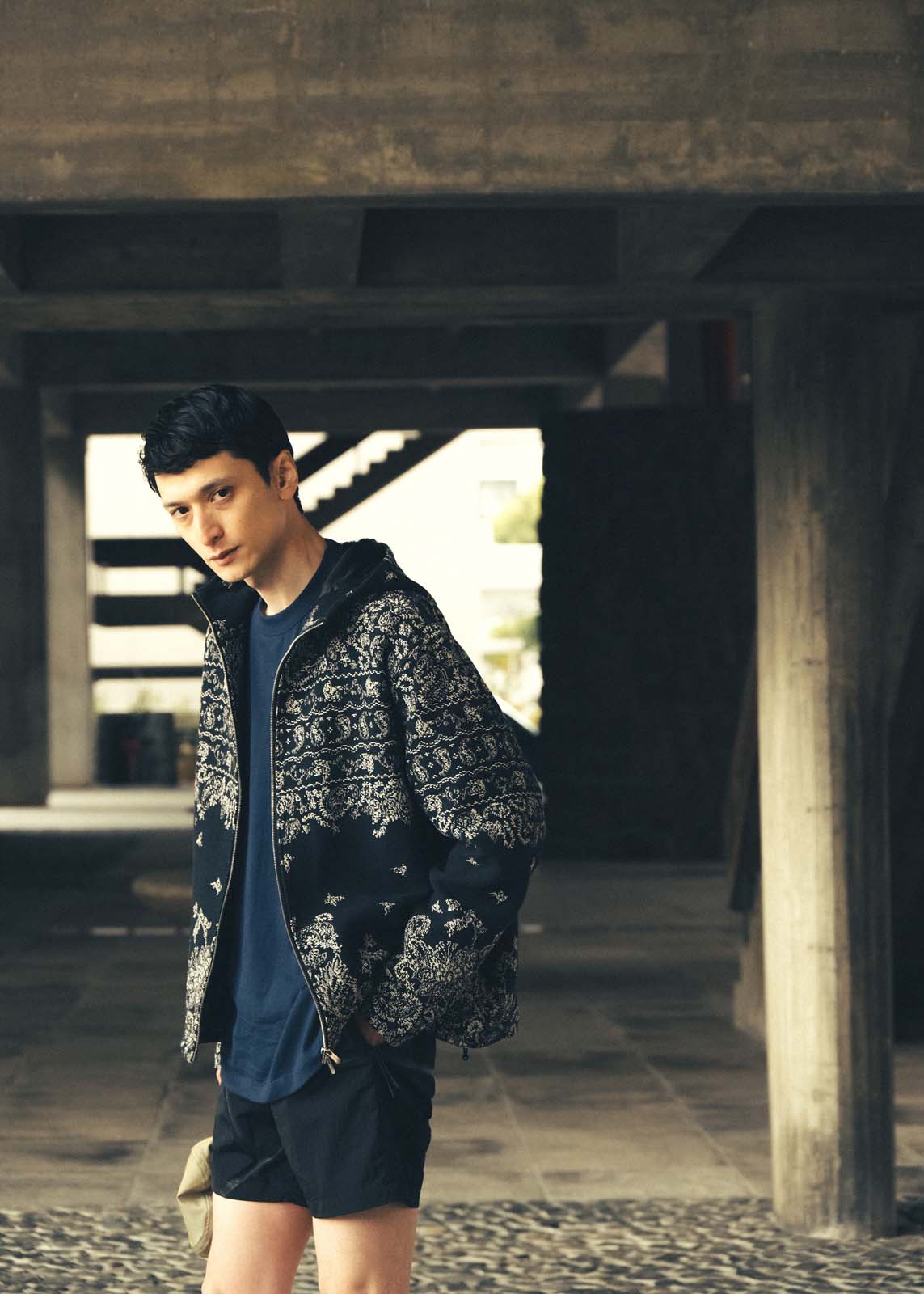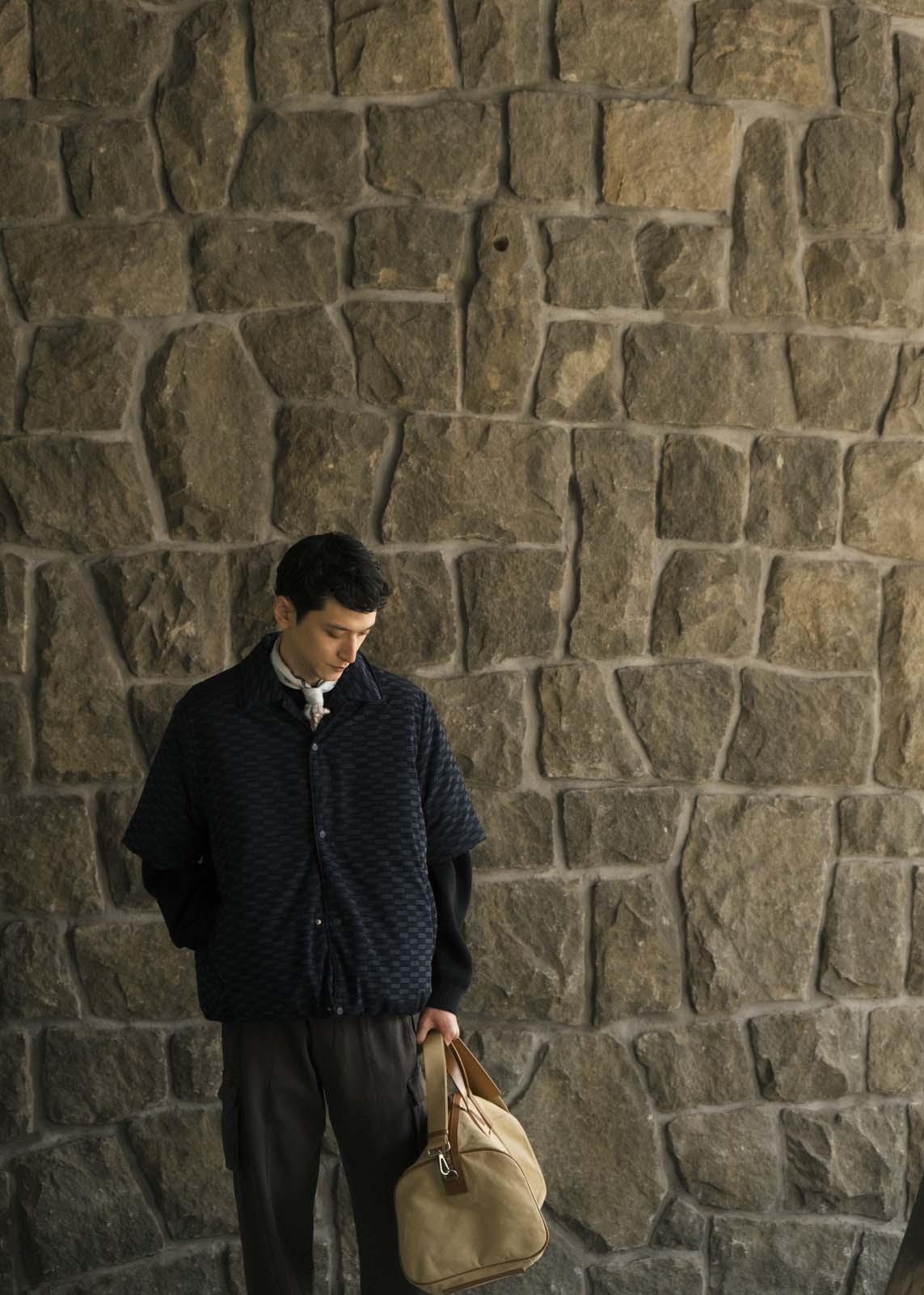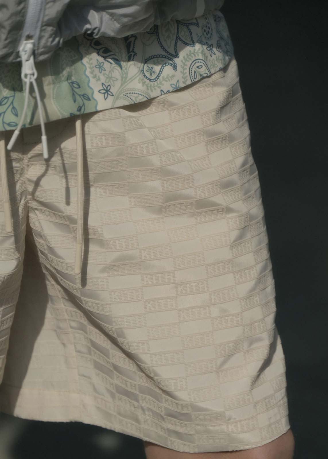 Kithモノグラムの総柄が特徴的な「Flocked Monogram Puffed Devon Shirt」も新しいシルエットとして登場。フロントはスナップボタンで開け閉めが可能で、サイドボディーのポケットが付属する。