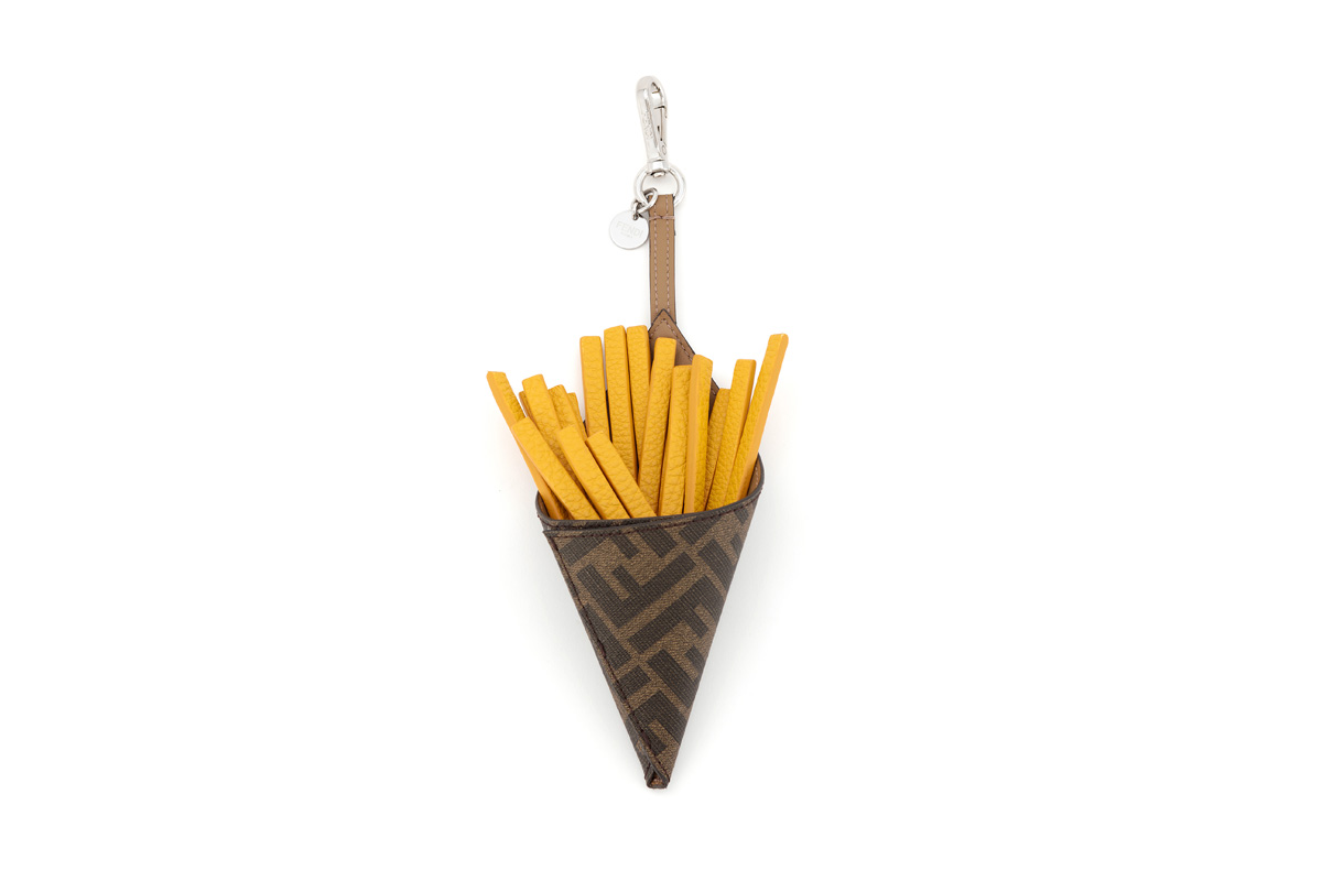 アクセサリーおよびメンズウェア部門のアーティスティック ディレクター、シルヴィア・フェンディ(Silvia Venturini Fendi)は、このコレクションにブランドが持つ「一族」の精神を込め、家族や食の歓びをテーマに、楽しさと祝祭感を食べ物で表現。ホットドッグやピザ、フライドポテトをモチーフにしたユニークなアイテムが揃う。ブルゾン、Tシャツ、チャーム、さらにはアイコニックな「バゲット ソフト トランク(Baguette Soft Trunk)」バッグまで、レザーパッチやインレイ、プリントを施し、FENDIならではの遊び心と卓越した職人技を感じさせる。特に目を引く実物大のフライドポテトや握りずしを模したチャームは、バッグやベルトループに取り付けることで、個性を引き立てる。