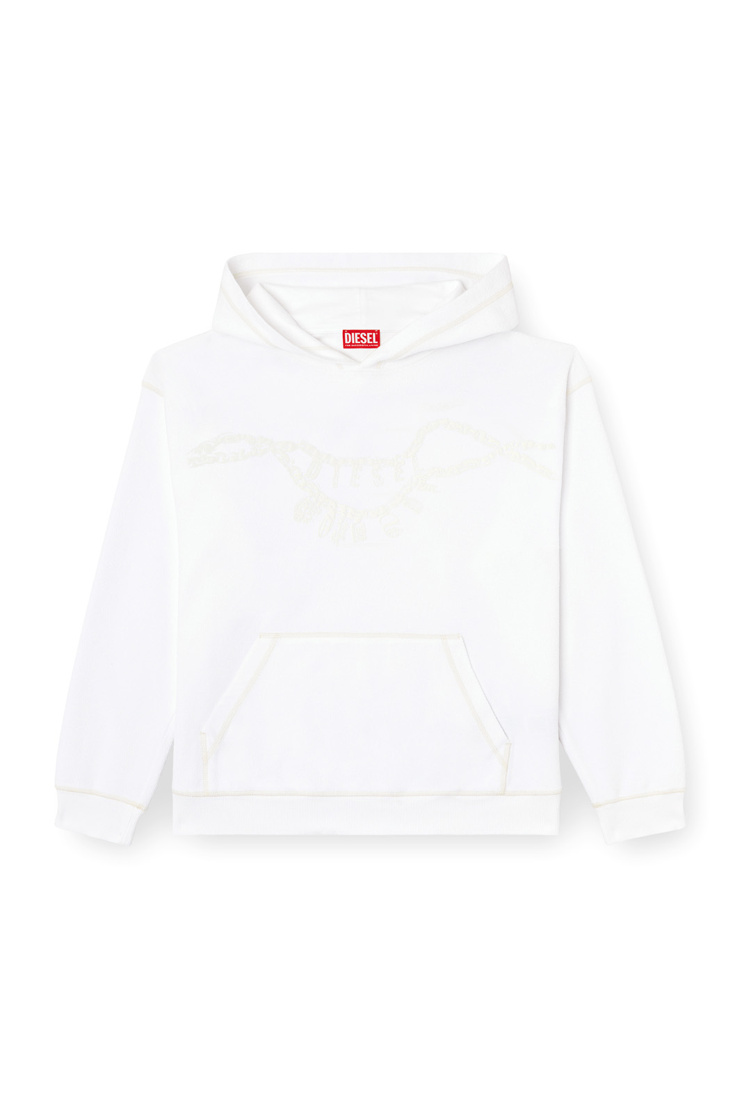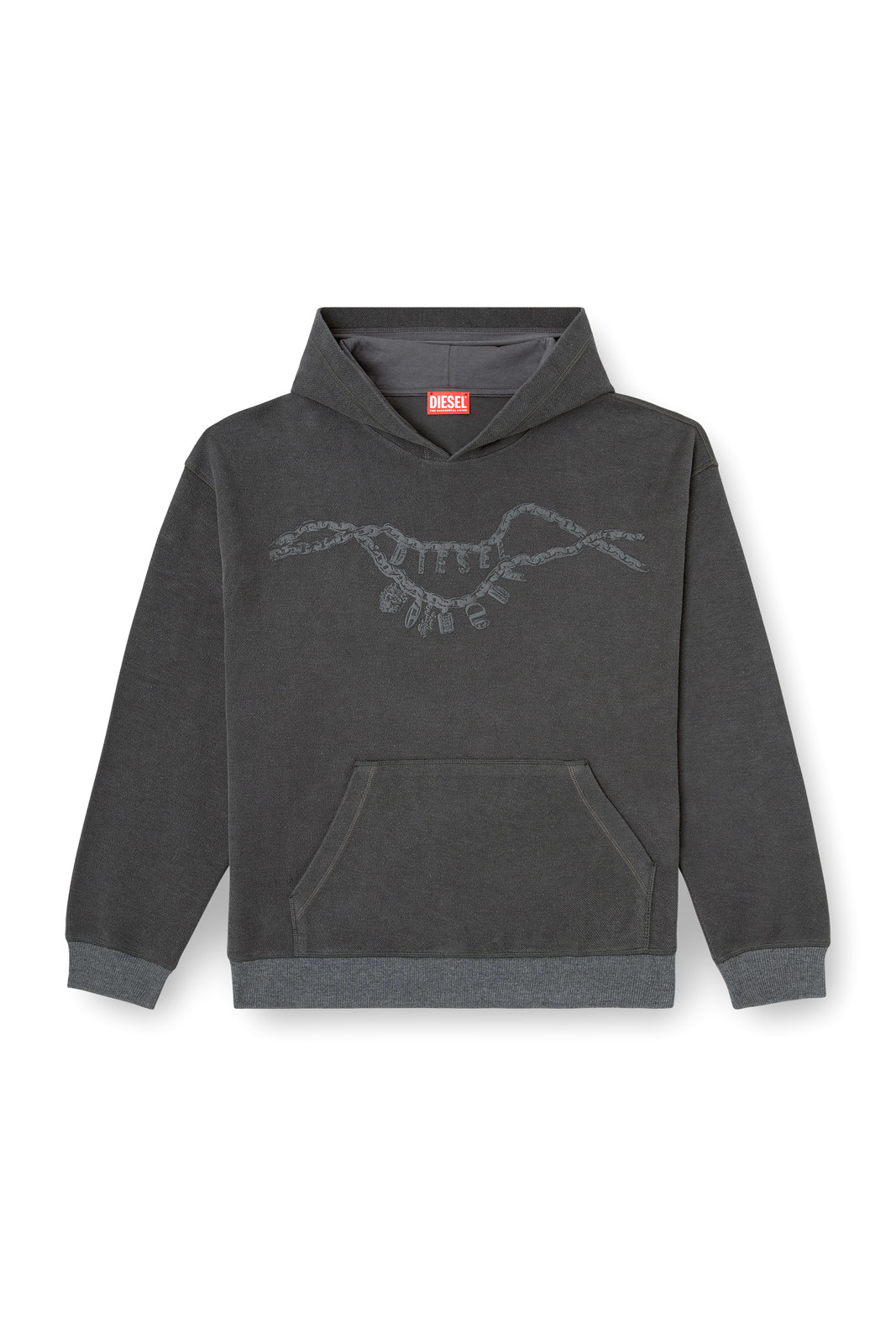 クリエイティブ・ディレクターのグレン・マーティンス(Glenn Martens)がデザインした全14型のアイテムを展開。ホシのクリエイティブな感性を反映したアイテムには、オーバーサイズのスウェットパーカーやTシャツなど、ストリートとラグジュアリーが融合したスタイルが特徴。アイテムに施されたシルバーチェーンモチーフは、実際のチェーンチャームやグラフィックとしてデザインに取り入れられ、DIESELの象徴的なロゴやスローガン「For Successful Living」、1DRバッグに加え、韓国語の「虎」と「視線」を掛け合わせたホシの名前を表現するタイガーヘッドが登場する。