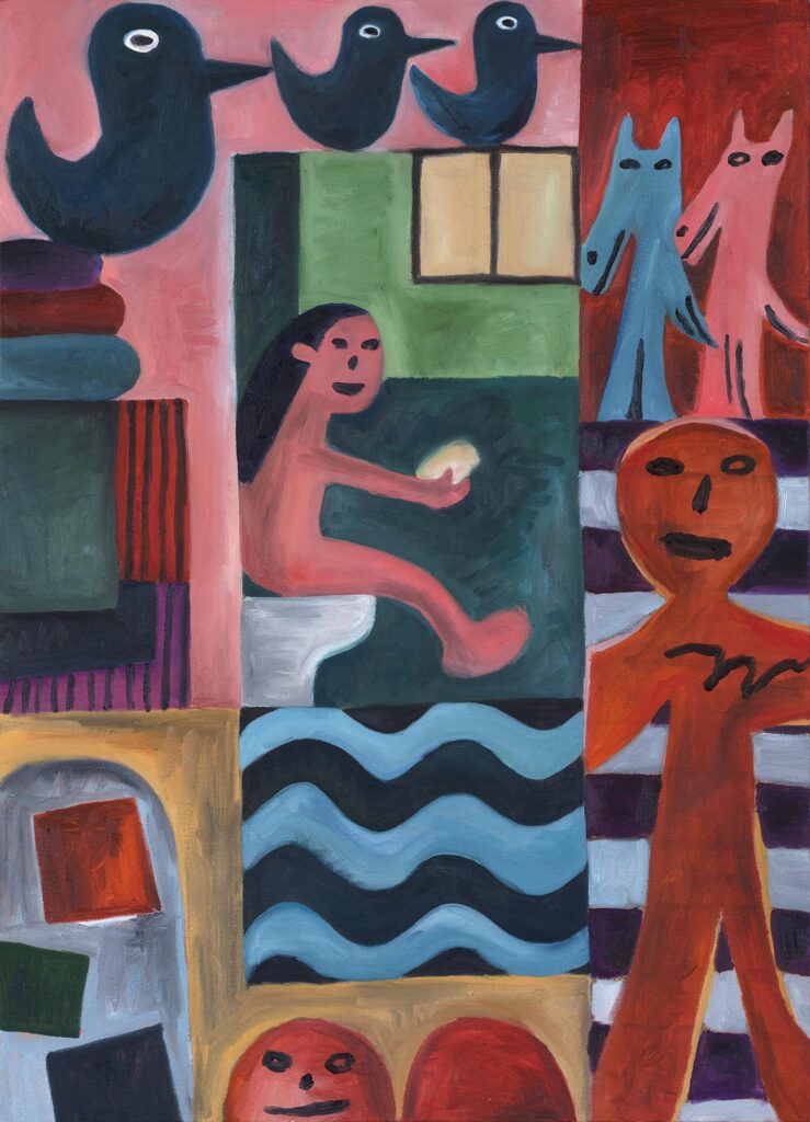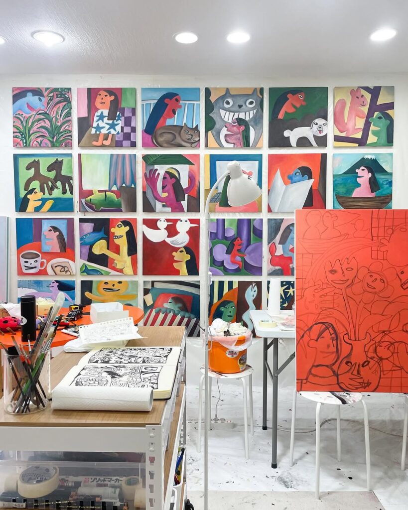 ソウルを拠点に、ペインティングやスカルプチャーを軸に国際的な活動を展開する大河原。プロダクトデザインやブランドとのコラボレーションなど、ジャンルを横断する表現にも積極的に取り組んできた。本展では「愛と日常」をテーマに、韓国移住から約2年の歳月を経て生まれた新たな挑戦、オイルペインティングにフォーカス。女性像を中心とした約50点の新作が並ぶ。多くの作品に登場するミューズは、大河原のアーティストとしての生活において大きな存在であるパートナー。彼女との関係性が、「MUSE TAKING A SHIT」という構想につながっている。