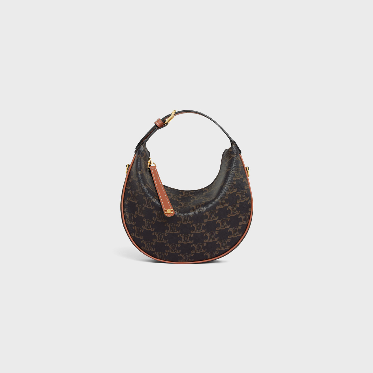 丸みを帯びたシェイプと小ぶりなサイズ感が特徴のホーボーバッグ。長めのレザージッププラーにはミニトリオンフがあしらわれ、ミニマルで洗練された印象に。取り外し可能なショルダーストラップが付属し、ハンドキャリー、ショルダー、クロスボディの3通りの持ち方が可能。素材は、シボ感のあるサプルグレインカーフスキンと、トリオンフモノグラムを再現したトリオンフキャンバスの2種類で展開される。