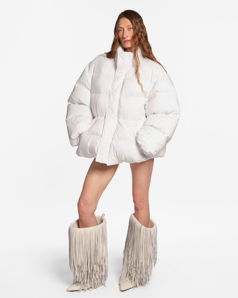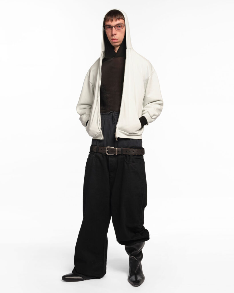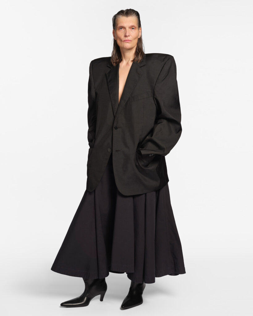 本コレクションの制作には、写真家、アリ・ヴェルスルイス(Ari Versluis)とスタイリストのエリー・イッテンブローク(Ellie Uyttenbroek)が参加。彼らの代表作である、様々な社会的集団のドレスコードを体系的に記録した写真集「Exactitudes」は、これまでのデムナのファッションアプローチに多大な影響を与えてきた。ルックには、デムナが手がけてきた35のコレクションから厳選したアイテムに加え、自身のワードローブやガーメントを採用。彼のスタイルを象徴するシルエット、ボリューム、アティチュードを通して、「現代のワードローブとは」「人々が実際に何を、どのように着ているのか」「ラグジュアリーとファッションの境界線とは」といった問いを投げかけるコレクションとなっている。