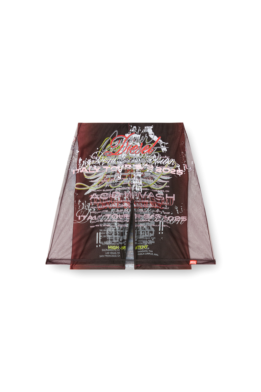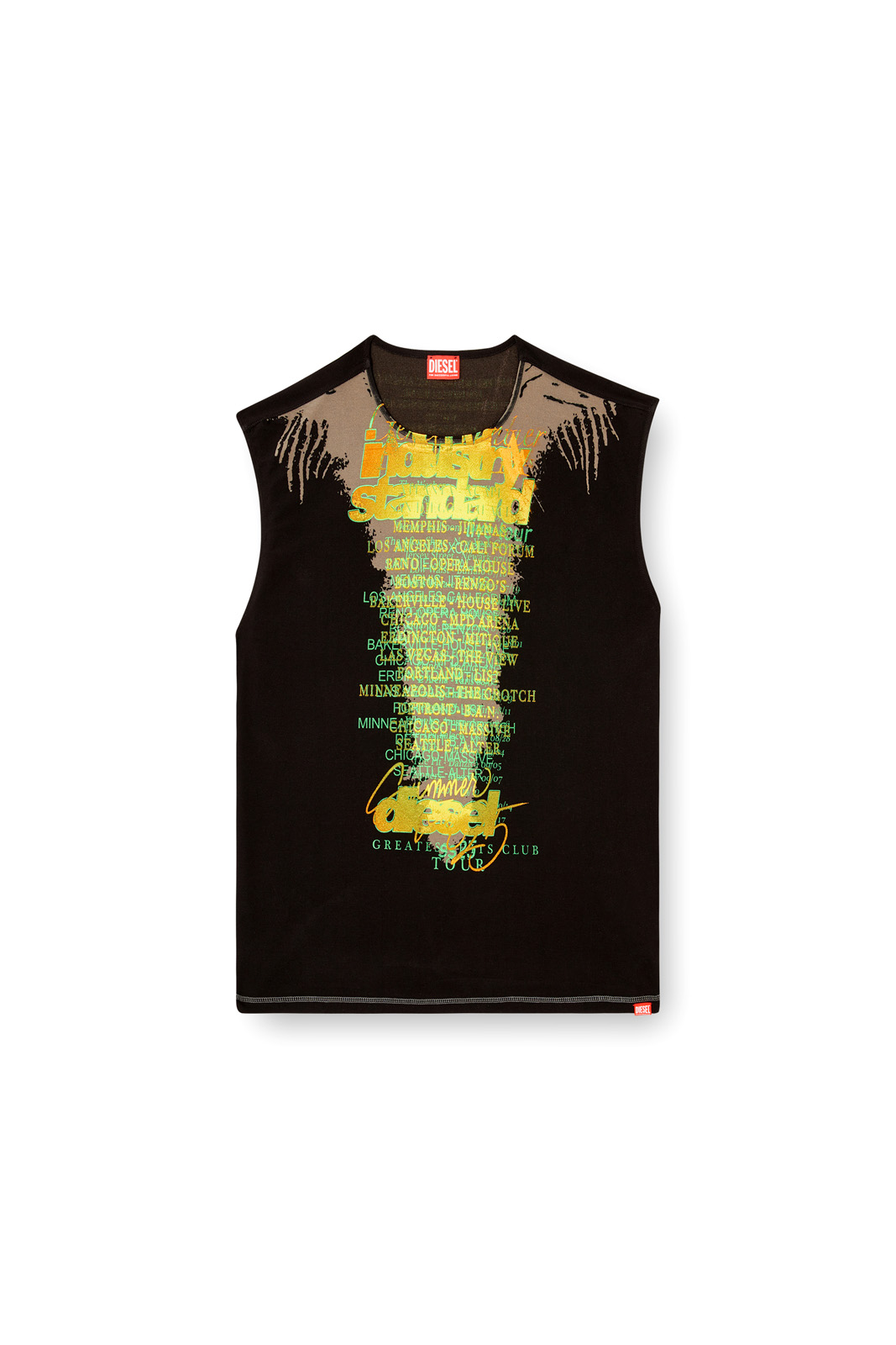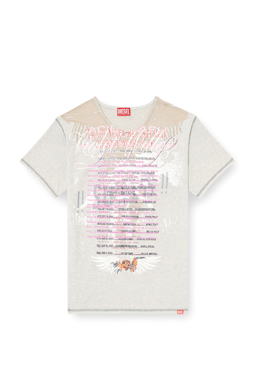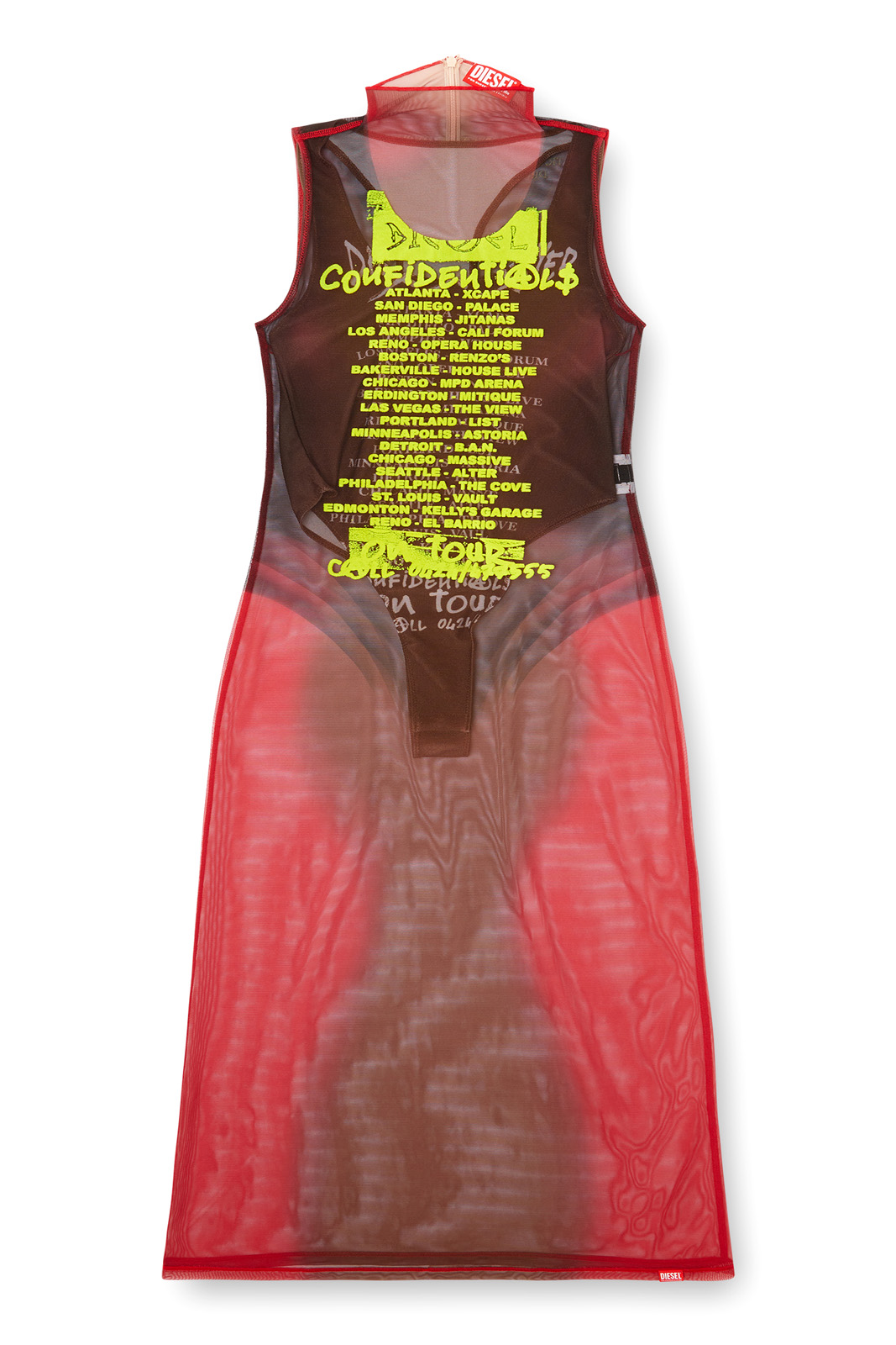 アイテムは、ヴィンテージのツアーグッズに着想を得たグラフィックとDIESELならではのエッジィなデザインを融合した、シアードレスやタンクトップ、ミニスカートのほか、Tシャツ、デニムなどをラインナップ。さらに、ブランドのアイコニックな「Play」バッグのアップデート版や、オーバルDロゴのモチーフをあしらった「Ten&Half」ブーツなども用意する。