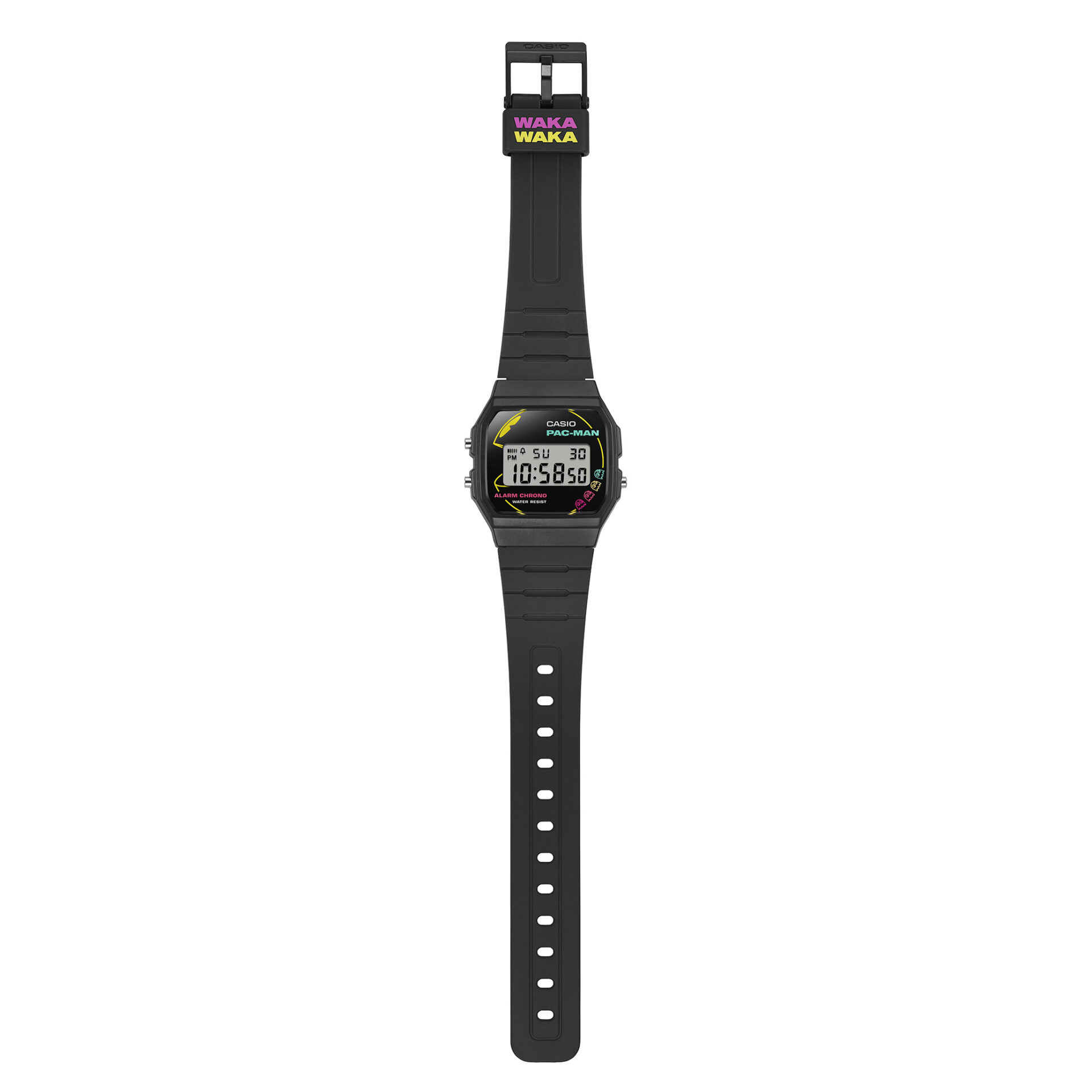 「A168WEPC」「F-91WPC」は、「パックマン」と4種類のゴースト(ブリンキー、インキー、 クライド、ピンキー)を大胆にレイアウトし、カラフルなネオンカラーでポップなデザインに仕上げた。「A168WEPC」の中留カバーと液晶(点灯時)、「F-91WPC」の遊環には、「パックマン」がクッキーを食べる音「WAKAWAKA」の文字をあしらい遊び心をプラス。