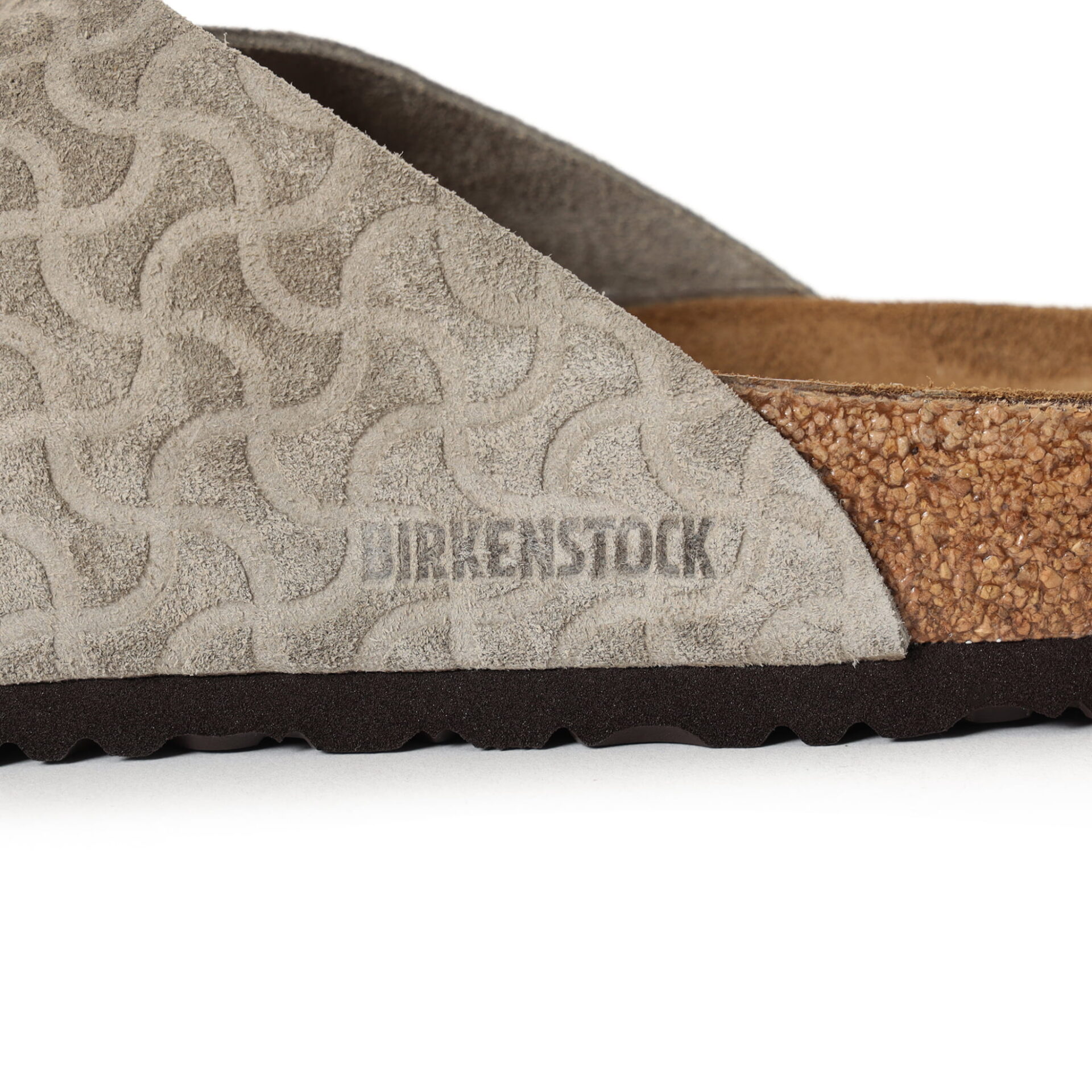 2つの刻印が特徴。1つ目は、アッパー全面に施されたBIRKENSTOCKのシグネチャーである「ボーンパターン」。2つ目はインソールにBIRKENSTOCKのロゴに加え、初めて刻印されたBEAMSロゴは、両ブランドの深い関わりの証として存在感を放つ。