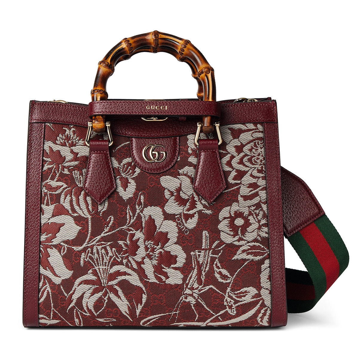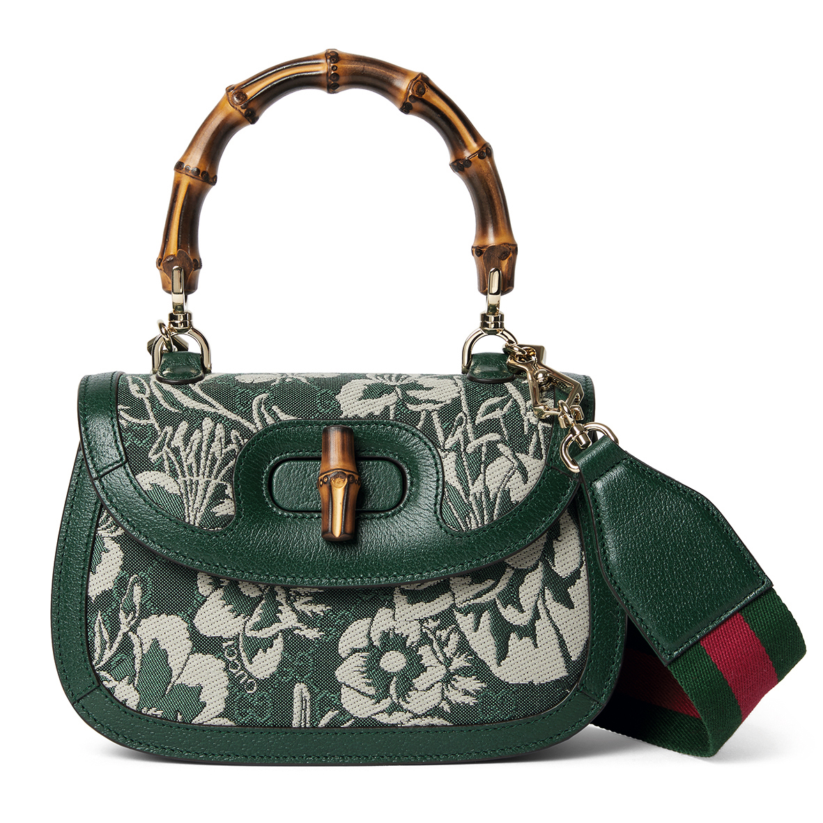 リミテッドエディションのハンドバッグは全9アイテム揃い、「グッチ バンブー 1947」スモールサイズ、「グッチ ダイアナ」スモールサイズとミニサイズ、「グッチ ジャッキー」のそれぞれに、GUCCIの新たなシグネチャーカラーであるグッチ ロッソ アンコーラ(深みのあるレッド)とグリーンの2色が登場。テキスタイルと同色のレザートリム、ライトゴールドトーンのハードウェアを組み合わせた。さらに、「グッチ バンブー 1947」ミニサイズには「グッチ ロッソ アンコーラ」のテキスタイルとリザードレザーのトリムを組み合わせたプレシャスなモデルもお目見え。