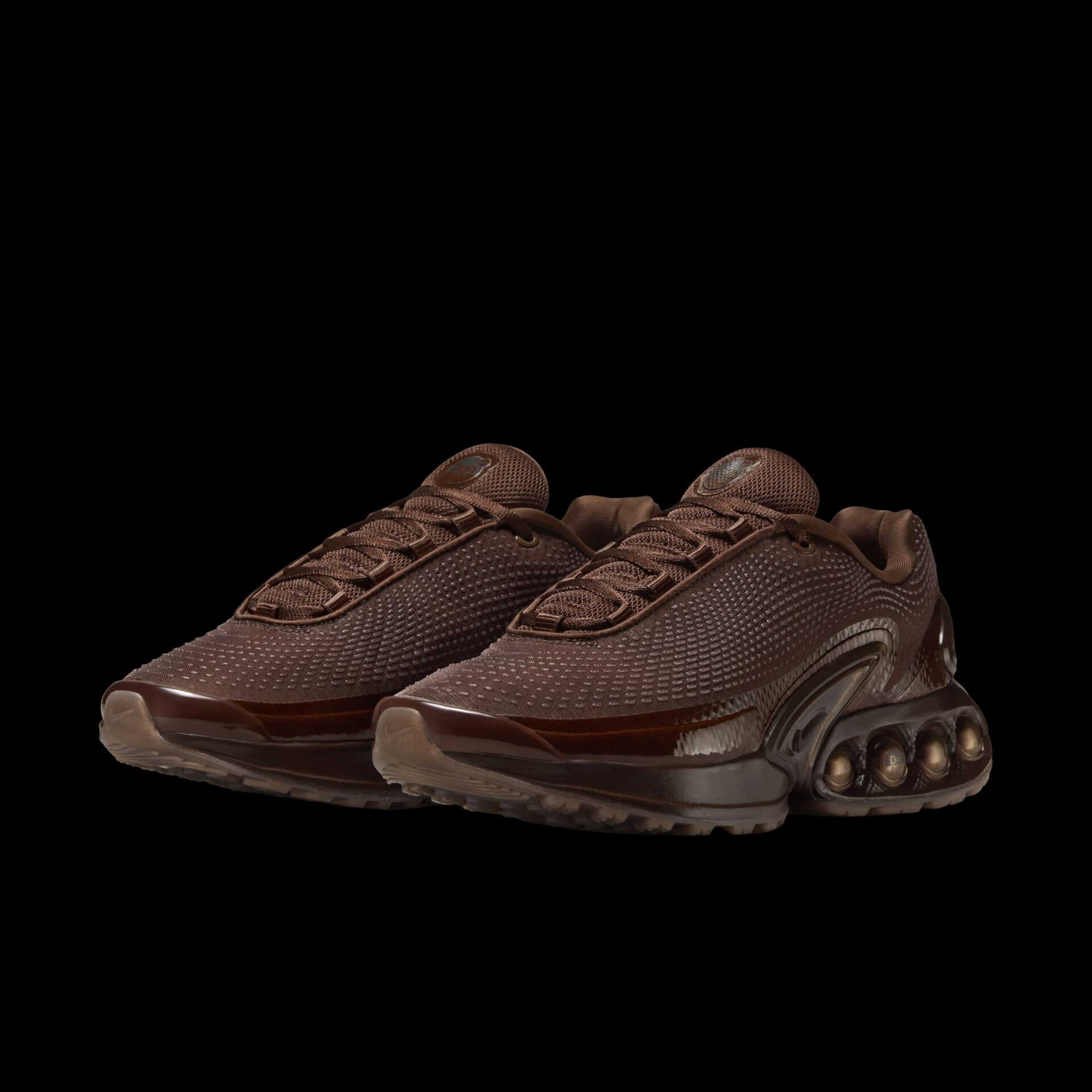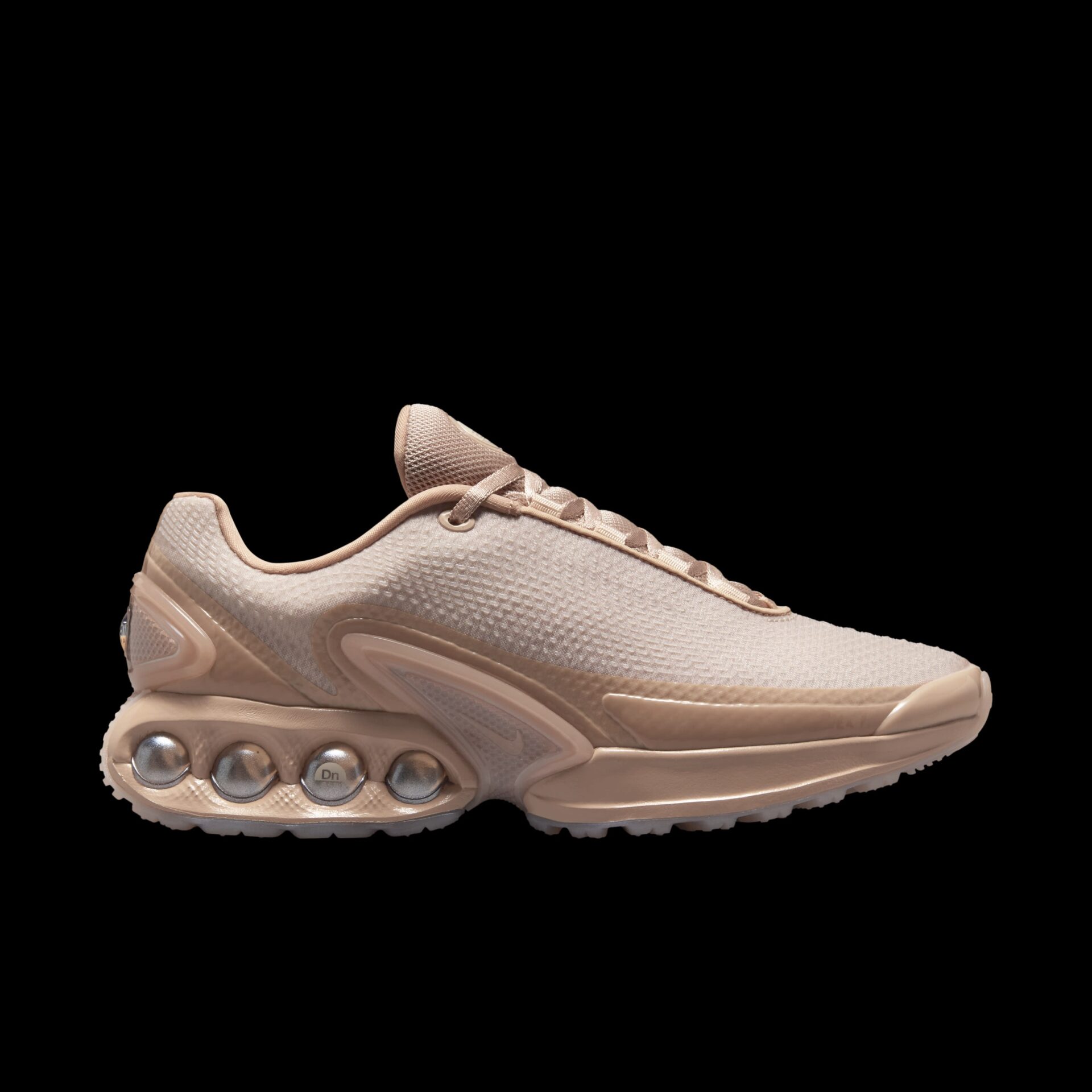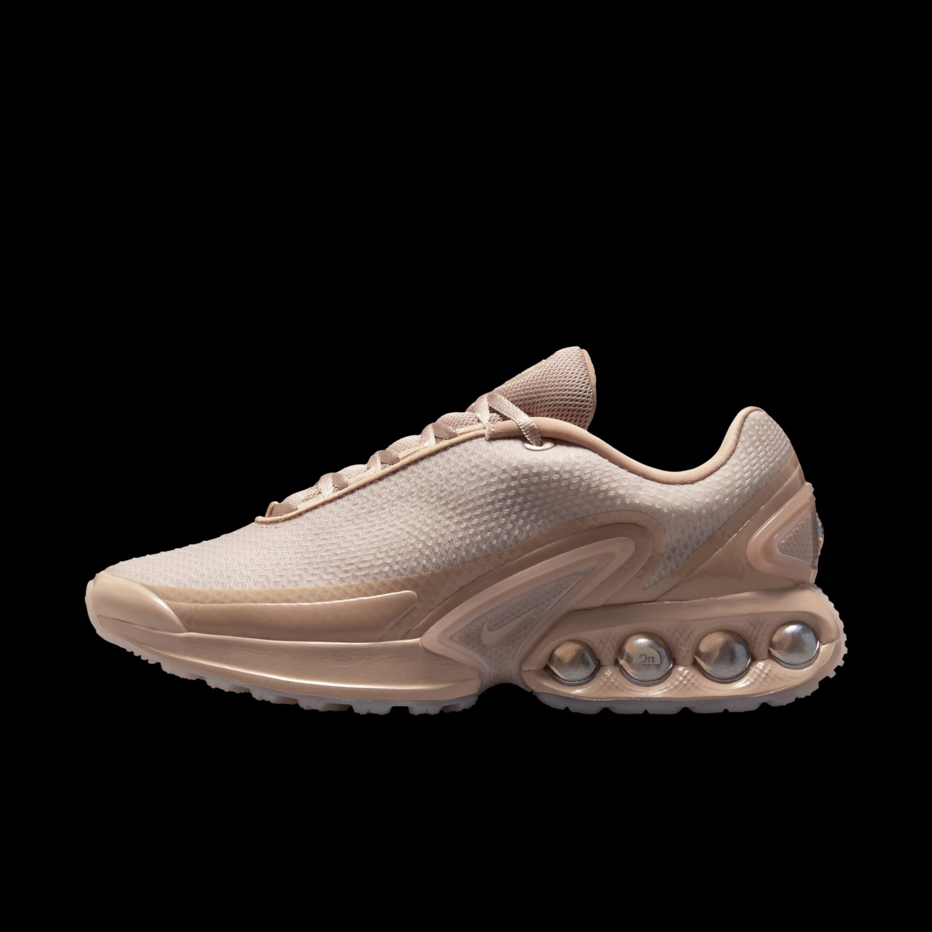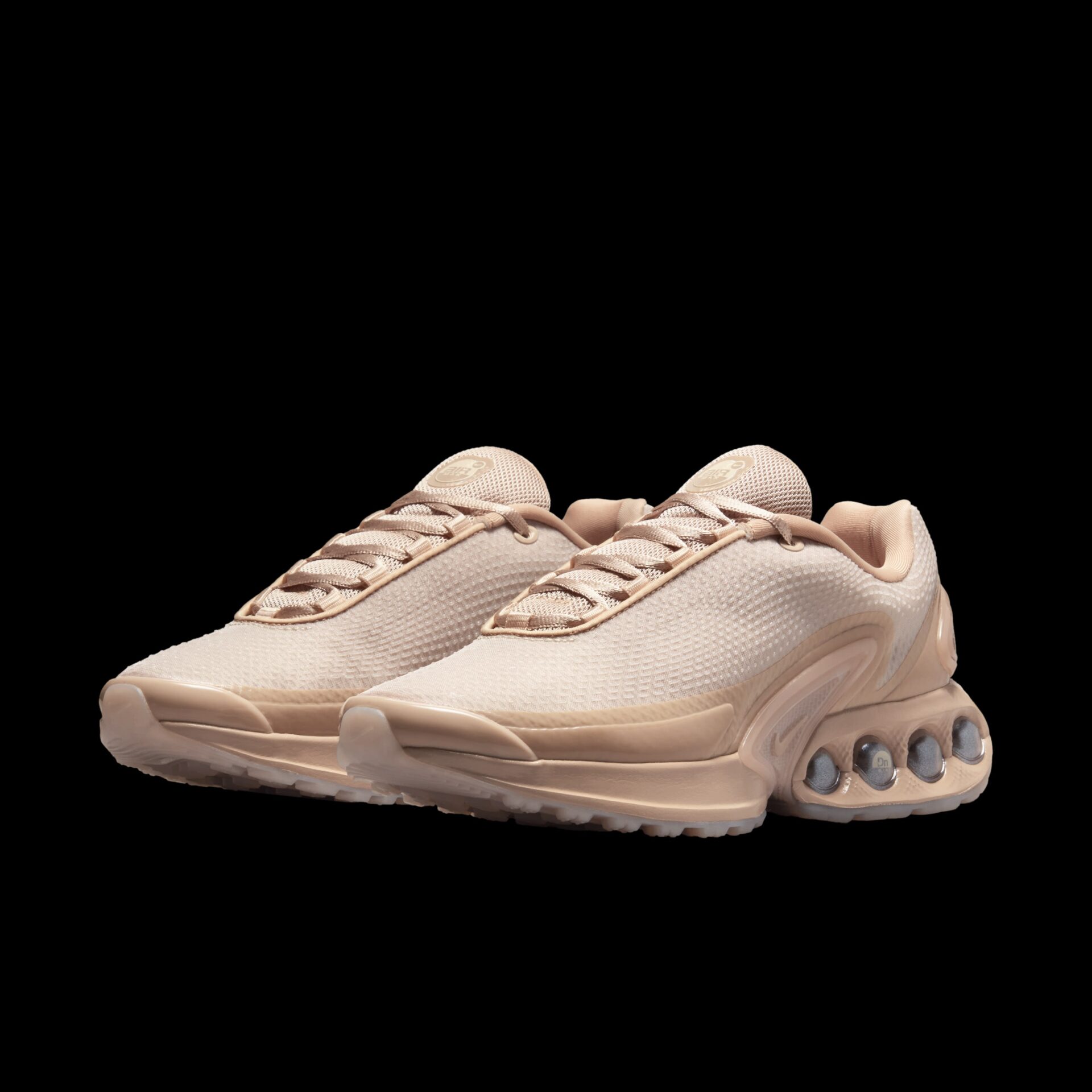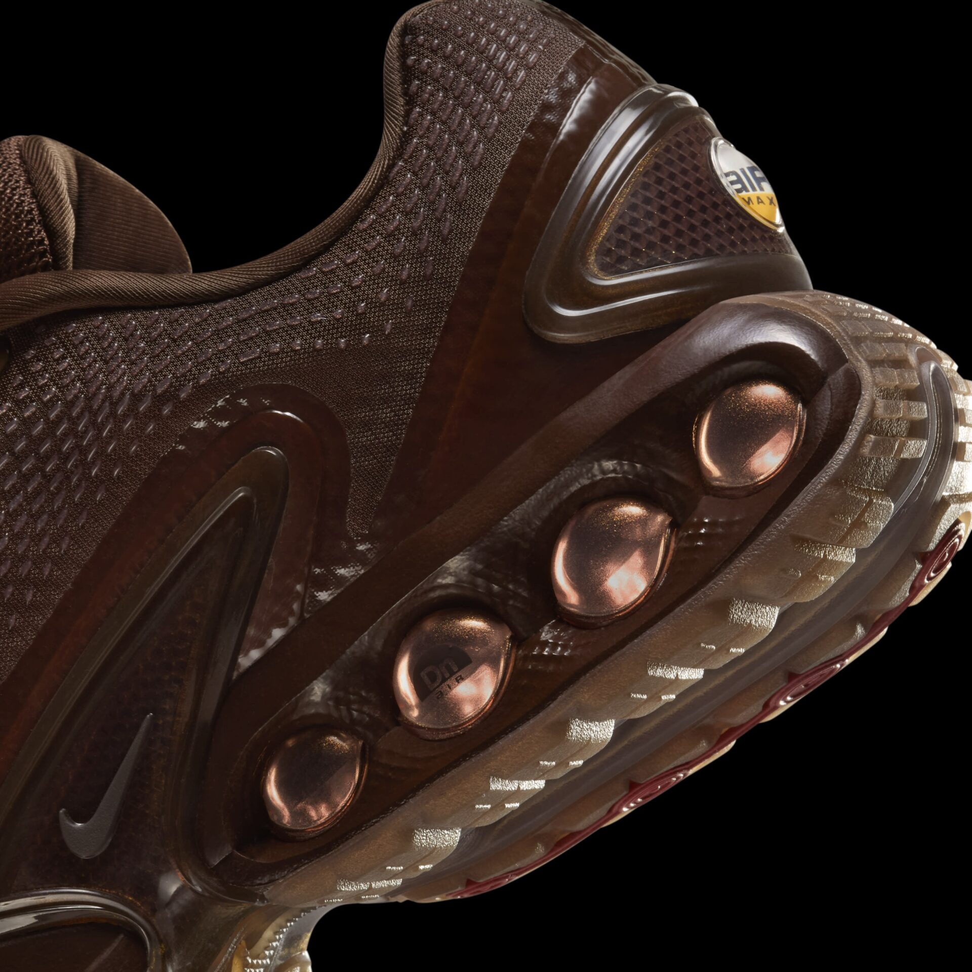 シルエットでは、2つのケースと4本のチューブで構成されたNike Air ユニットを活用することで、驚きの快適性、滑らかなストライド、高いレベルの反発力を実現。デザインの限界を引き上げるスタイルには、フレンチの美容製品をイメージした大胆な色合いが使われた。「エア マックス Dn」のカラーを製作するにあたり、フレンチはスポーツの分野からファッションの世界へと影響力を広げる女性アスリートをヒントにし、ベージュとチョコレートブラウンの2色がラインナップ。